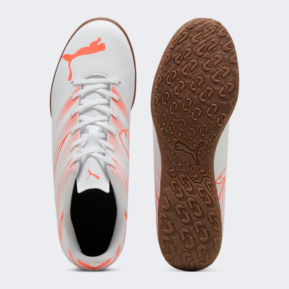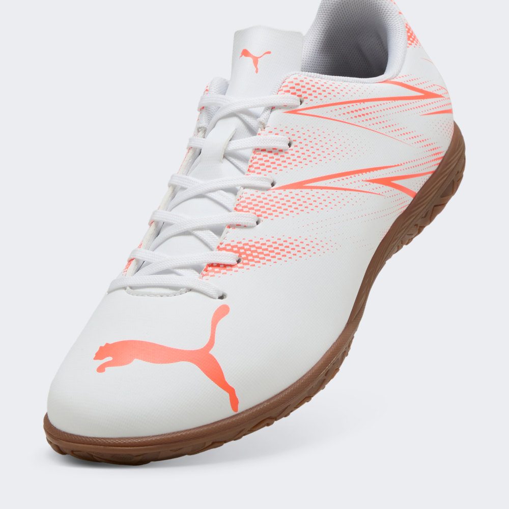Бутси Puma Attacanto IT дозволять Вам повністю зануритися у гру, не відволікаючись на дискомфорт. Синтетичний верх із м’якою підкладкою точно повторює форму стопи, забезпечуючи щільну посадку та комфорт із першої хвилини гри. Поверхня бутсів створена спеціально для покращеного дотику до м’яча, щоб Ви могли відточувати кожен рух і кожну передачу з максимальною точністю. Класична система шнурівки дозволить Вам зосередитися лише на грі, а не на взутті. Легка конструкція підошви створює відчуття невагомості, тому Ви зможете бігати, розвертатися та змінювати напрямок руху з неймовірною легкістю, зберігаючи швидкість і контроль у кожному моменті. Немарка підметка, розроблена для внутрішнього покриття, гарантує чудове зчеплення та стабільність на зальних майданчиках, не залишаючи слідів і не заважаючи Вам проявляти свою майстерність. Лаконічний, зосереджений на грі дизайн дозволяє залишатися зібраним на полі, а логотипи Puma Cat делікатно підкреслюють Вашу вірність легендарному бренду й любов до справжнього футбольного стилю.