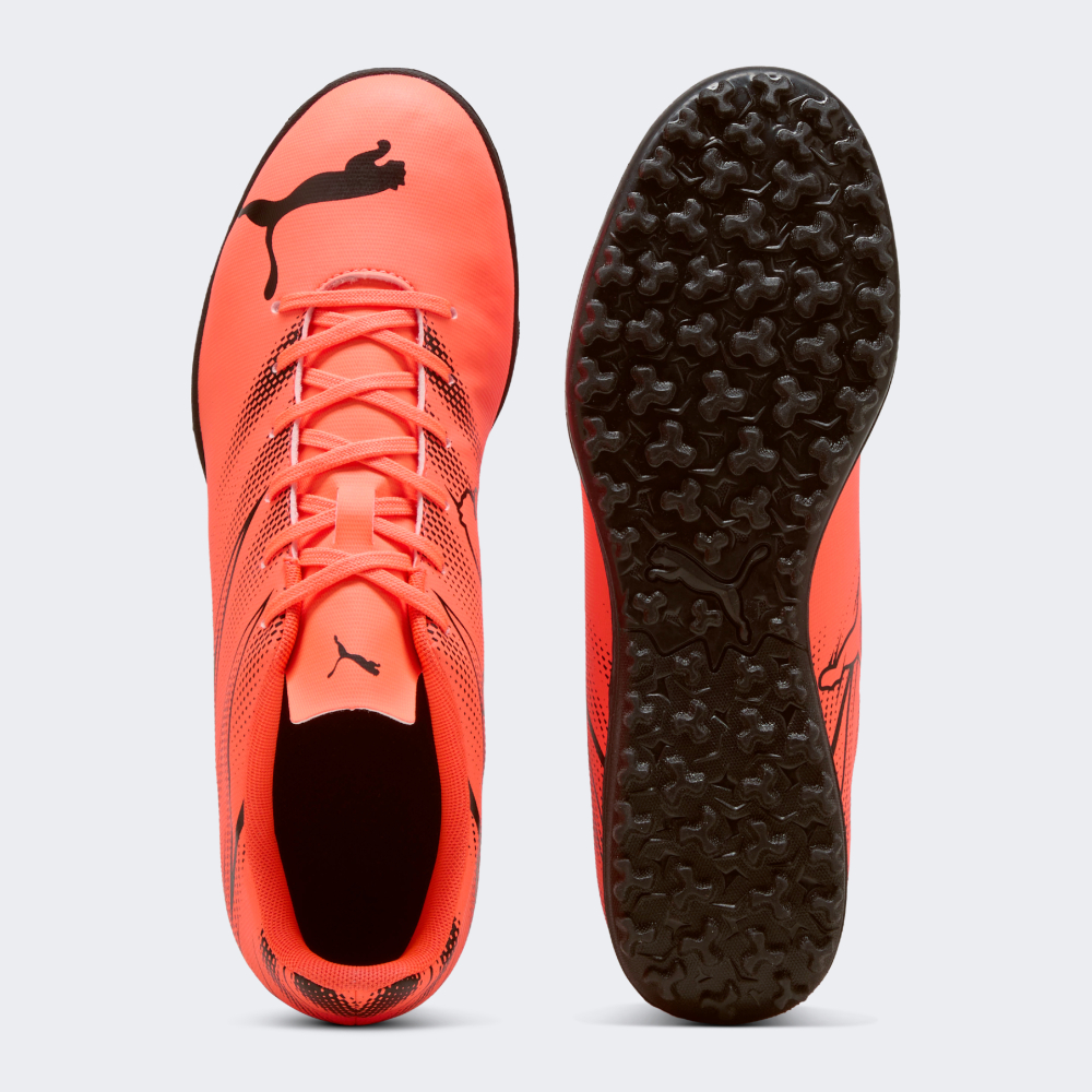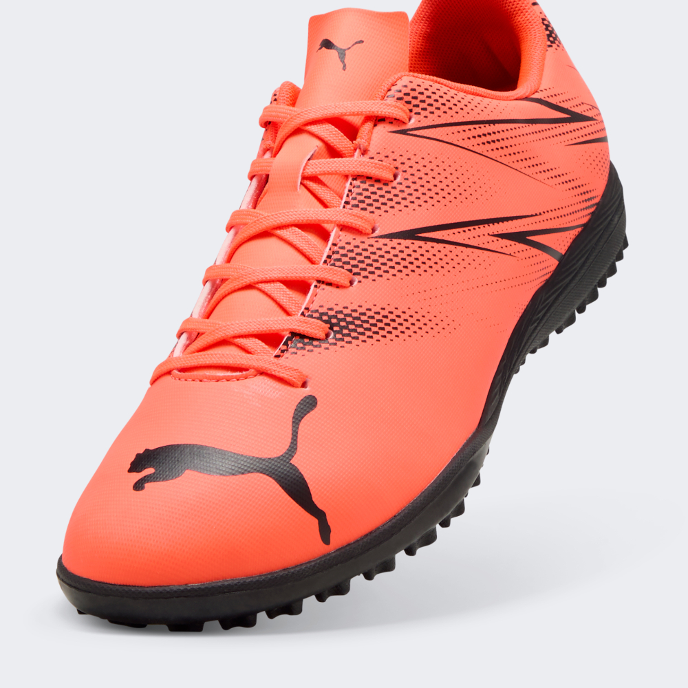 Бутси Puma Attacanto TT створені для тих, хто прагне впевнено вдосконалювати футбольну майстерність, не жертвуючи комфортом. Вони стануть Вашим надійним партнером на кожному тренуванні та під час напружених матчів. М’який синтетичний верх ідеально облягає стопу та забезпечує точні дотики до м’яча, що допоможе Вам відточувати удари, паси та дриблінг із винятковою точністю. Система шнурівки надійно фіксує стопу, дозволяючи Вам зосередитися лише на грі, а не на взутті. Низькопрофільна гумова підошва з численними шипами забезпечує надійне зчеплення з твердими природними покриттями та штучною травою, тому Ви зможете впевнено виконувати різкі маневри, швидко змінювати напрямок і тримати ситуацію на полі під контролем. Лаконічний дизайн дозволяє повністю зосередитися на грі, а логотипи Puma Cat елегантно підкреслюють Вашу вірність бренду та пристрасть до футболу.