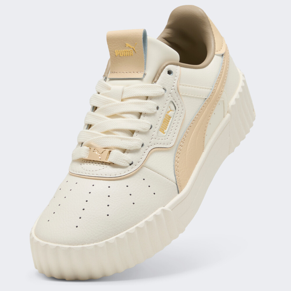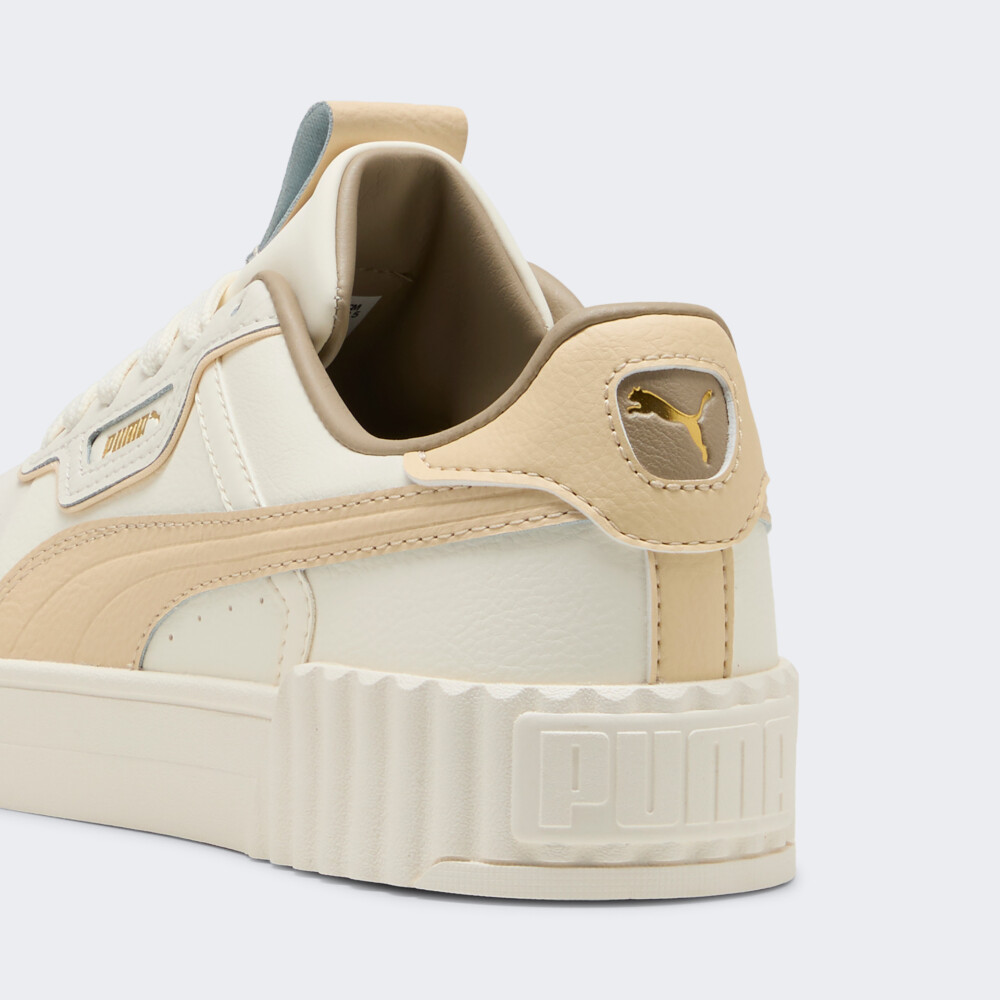 Кеди Puma Carina 3.0 Luxe переносять Вас у сонячну атмосферу каліфорнійського узбережжя, де панує свобода й безтурботність. Їхній витончений силует майстерно поєднує дух 80-х із сучасними модними акцентами, створюючи ідеальний варіант для жінок. Верх із натуральної шкіри та синтетичних матеріалів із перфорованими вставками дарує приємну вентиляцію та комфорт навіть під час найактивніших моментів дня. Класична система шнурівки забезпечує надійну фіксацію стопи, щоб кожен крок був упевненим та легким. Устілка SoftFoam зменшує навантаження та дарує відчуття м’якості з першої до останньої хвилини носіння. Гумова підошва гарантує чудове зчеплення з будь-якими поверхнями — від жвавих міських тротуарів до затишних паркових стежок. Знакові смужки Formstrip і лаконічний логотип Puma стають яскравим фінальним акцентом, який підкреслить Вашу відданість легендарному вуличному стилю. Puma піклується про зниження впливу на довкілля, тому модель виготовлено з використанням перероблених матеріалів.
