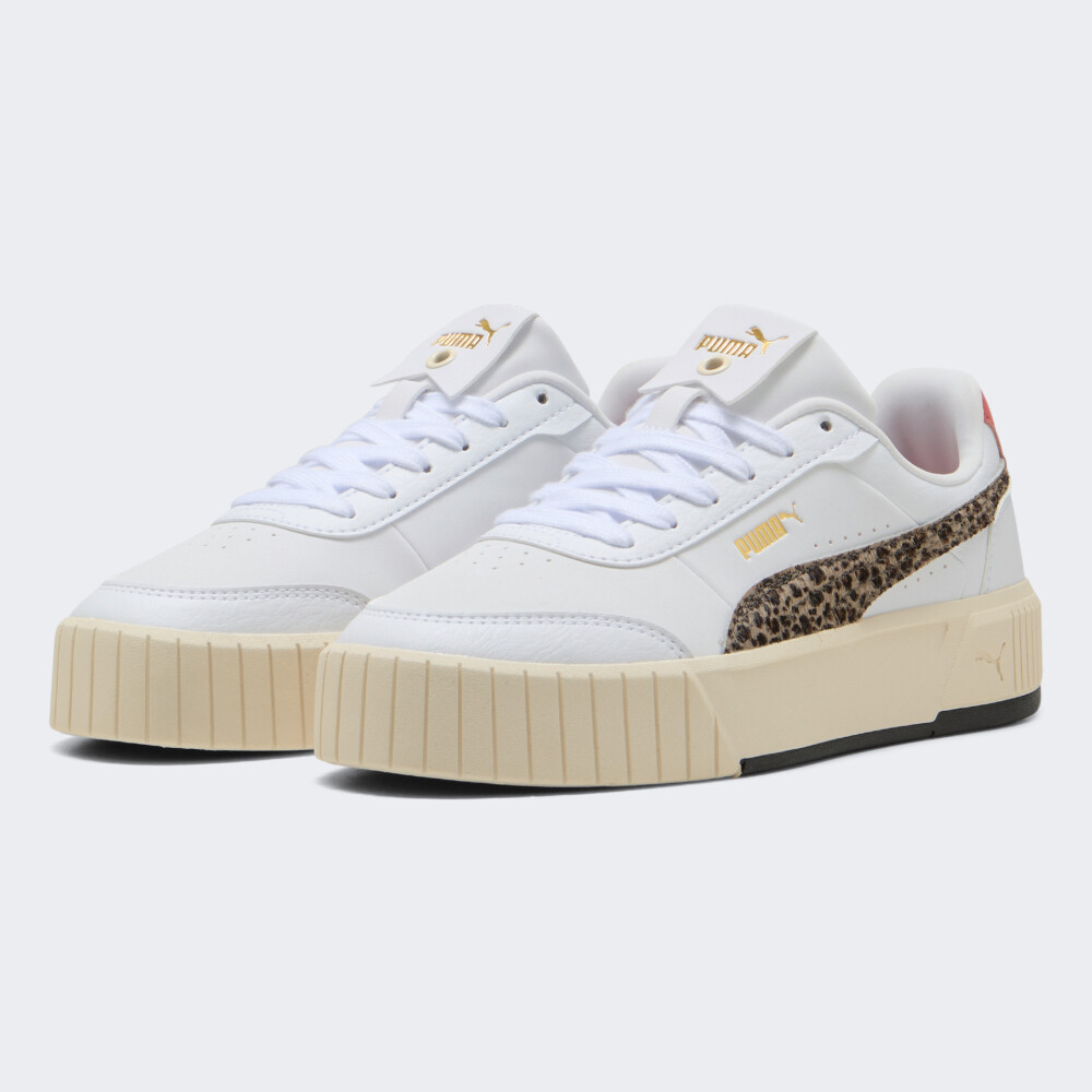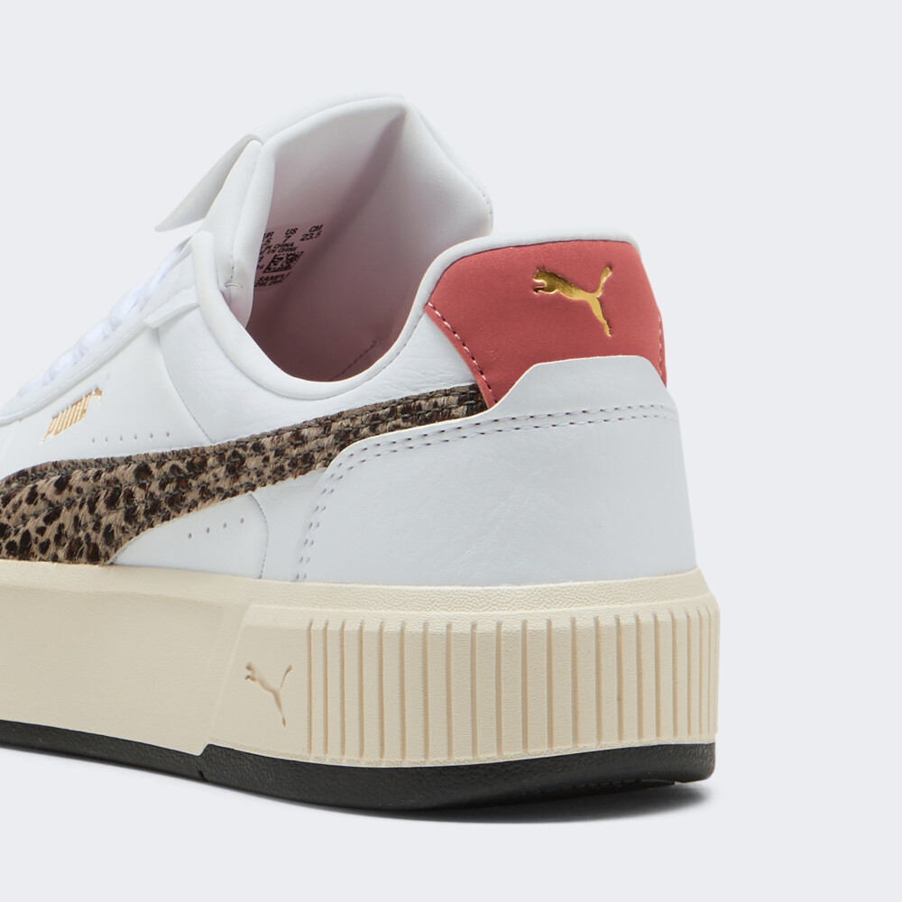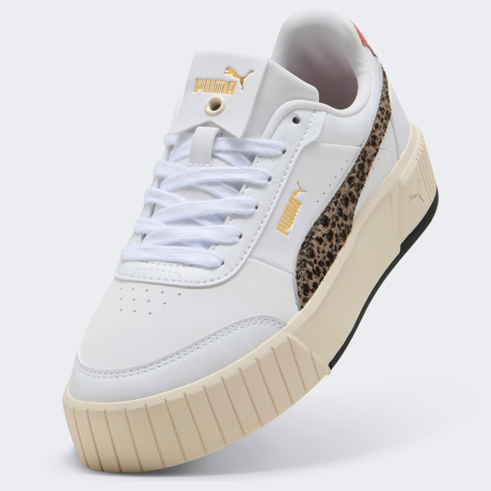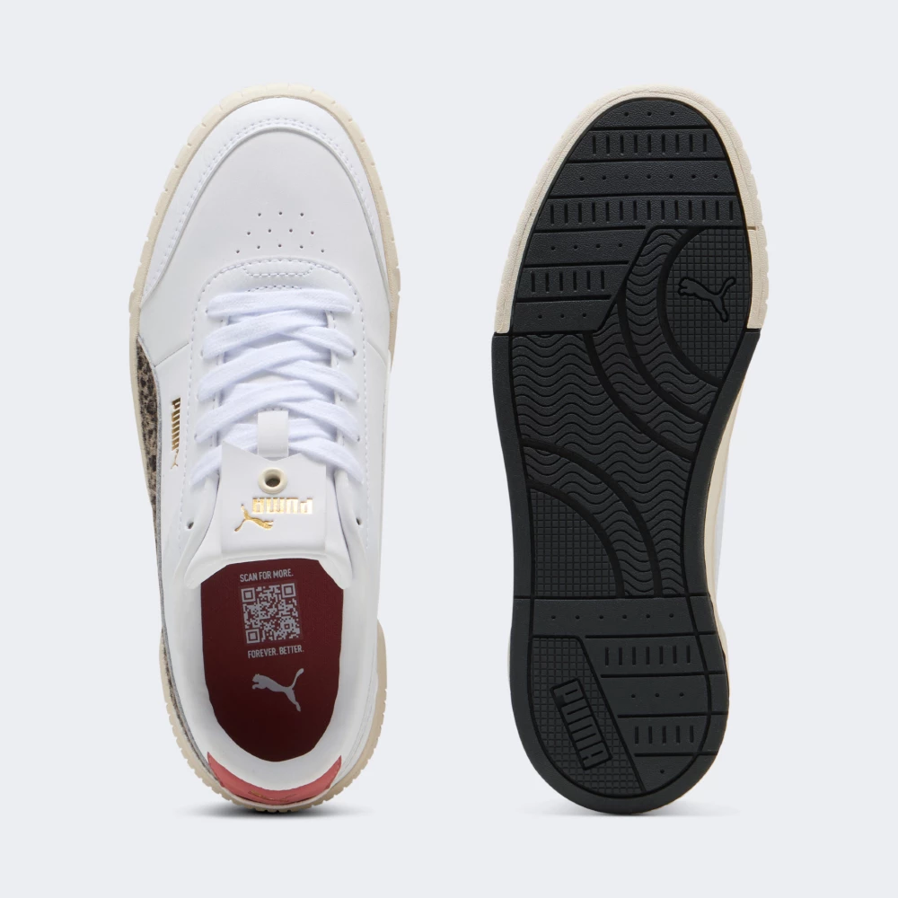 Кеди Puma Carina Mia Animal Flair — це витончена тенісна класика 80-х з актуальними модними трендами, тому додає Вашим образам сміливості й неповторного шарму. Синтетичний верх із дрібною перфорацією не лише додає елегантності, а й забезпечує комфорт навіть під час найактивнішого дня. Класична шнурівка гарантує надійну фіксацію, даруючи впевненість у кожному кроці. Устілка SoftFoam ніжно підтримує стопу, надає легку амортизацію та дозволяє рухатися довше без відчуття втоми. Потовщена гумова підошва з виразним текстурованим оформленням на носку та п’яті додає моделі характеру, забезпечуючи водночас чудове зчеплення з будь-якою поверхнею. Знакові смужки Formstrip з ефектним тваринним принтом додають зухвалості та драйву, а логотипи Puma стають фінальним штрихом, який підкреслює Вашу любов до легендарного вуличного стилю.