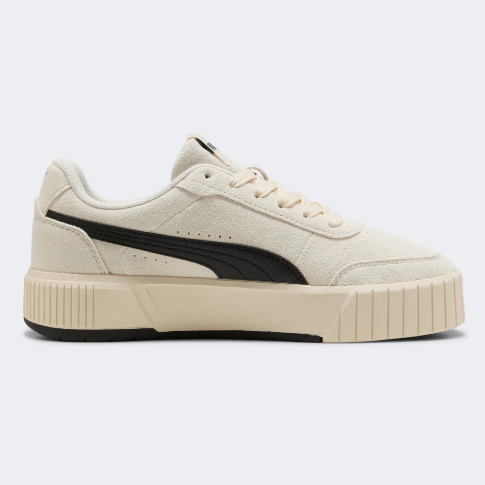 Кеди Puma Carina Mia Sd натхненні атмосферою тенісних кортів 80-х та створені для сучасного міського ритму. Вони переносять у часи безтурботного стилю, але при цьому ідеально відповідають сучасним трендам. М’який замшевий верх виглядає преміально та дарує приємні відчуття комфорту, додаючи образу глибини й вишуканості. Класична шнурівка надійно фіксує стопу, що дозволить рухатися впевнено й легко, незалежно від темпу. Устілка SoftFoam пом'якшує кожен крок, зменшує навантаження та дарує відчуття легкості навіть після насиченого дня. Потовщена гумова підошва з виразною текстурою на носку та п’яті додає силуету трендового об’єму й забезпечує надійне зчеплення з різними поверхнями. Фірмові смужки Formstrip і лаконічний логотип Puma завершують образ, підкреслюючи любов до легендарної спадщини бренду.