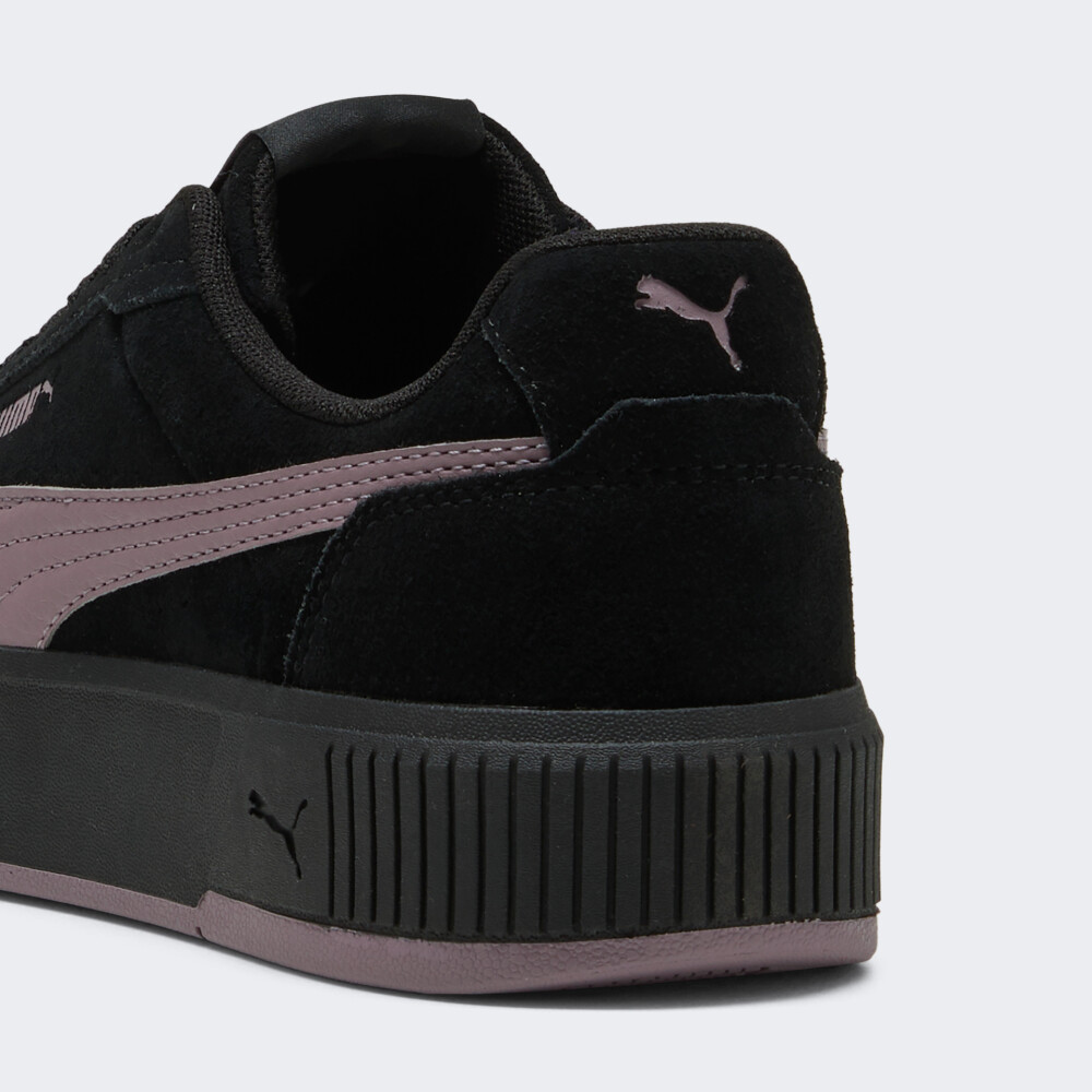 Кеди Puma Carina Mia Sd поєднують у собі ретро стиль тенісних моделей 80-их із шармом сучасної моди. Верх із м’якої замші не лише виглядає преміально, а й додає образам глибини та вишуканості. Перфоровані отвори сприяють природній вентиляції, завдяки чому ноги залишаються у комфорті навіть у найактивніші моменти. Класична шнурівка надає надійну фіксацію, а м’яка устілка SoftFoam створює відчуття легкості, зменшуючи втому під час довгих прогулянок. Потовщена гумова підошва з фактурними акцентами на носку та п’яті додає кедам характеру та забезпечує чудове зчеплення з будь-якою поверхнею — від асфальту великого міста до паркових доріжок. І, звісно, культові смужки Formstrip та лаконічний логотип Puma стануть фінальним штрихом, який підкреслить Ваш бездоганний смак і любов до легендарного бренду.