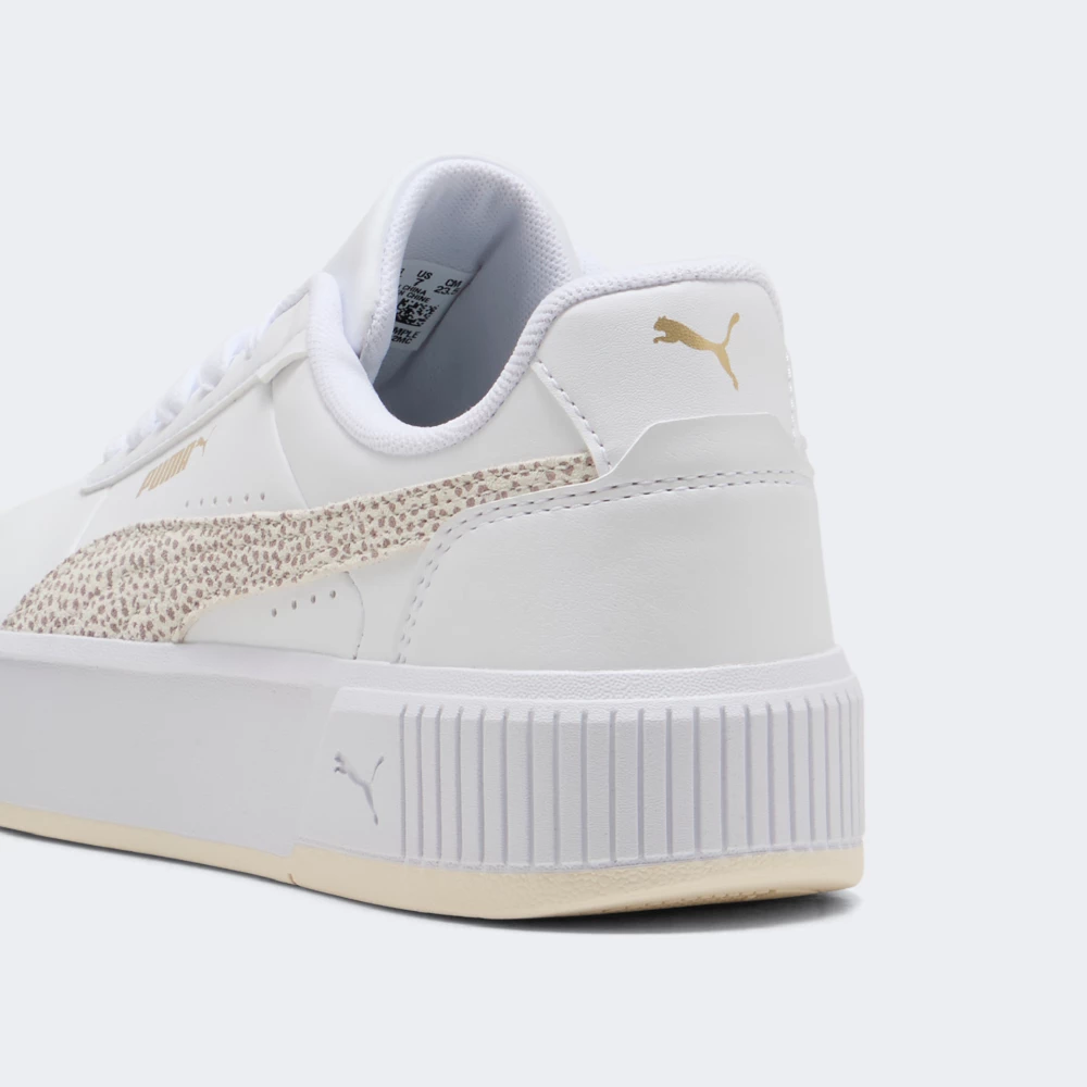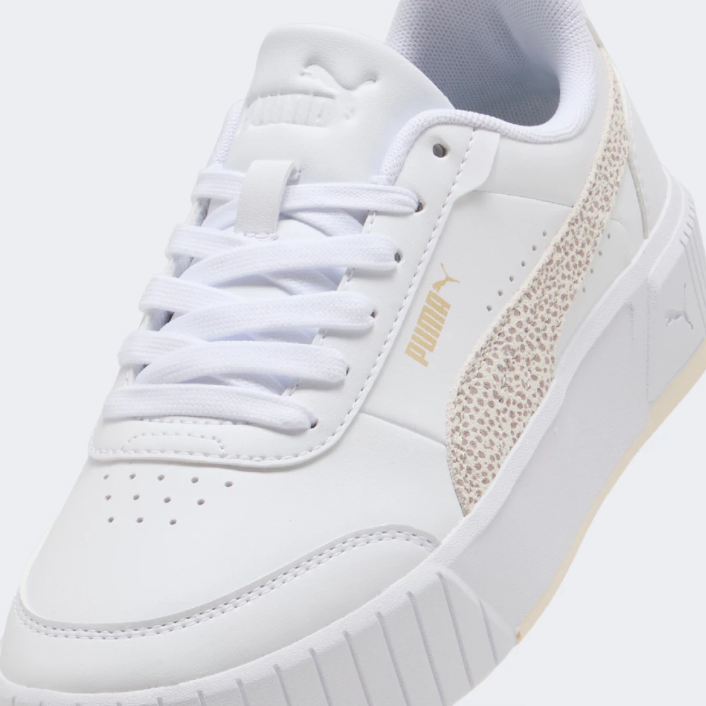 Кеди Puma Carina Mia Topcat поєднують тенісну класику 80-х із сучасними модними трендами, тому додадуть Вашим образам неповторної харизми. Синтетичний верх із дрібною перфорацією не лише додає елегантності, а й забезпечує комфорт навіть під час найактивнішого дня. Класична шнурівка гарантує надійну фіксацію, даруючи впевненість у кожному кроці. Потовщена гумова підошва з виразним текстурованим оформленням на носку та п’яті додає кедам характеру і забезпечує чудове зчеплення з будь-якою поверхнею від міських вулиць до парку. Яскраві смужки Formstrip з ефектним принтом та впізнавані логотипи Puma завершують стильний ансамбль, підкреслюючи Вашу любов до легендарного вуличного стилю.