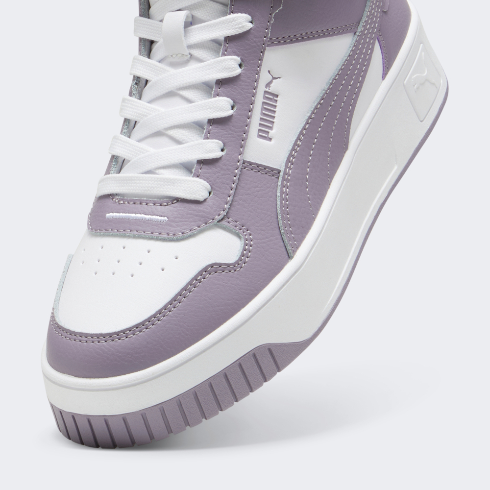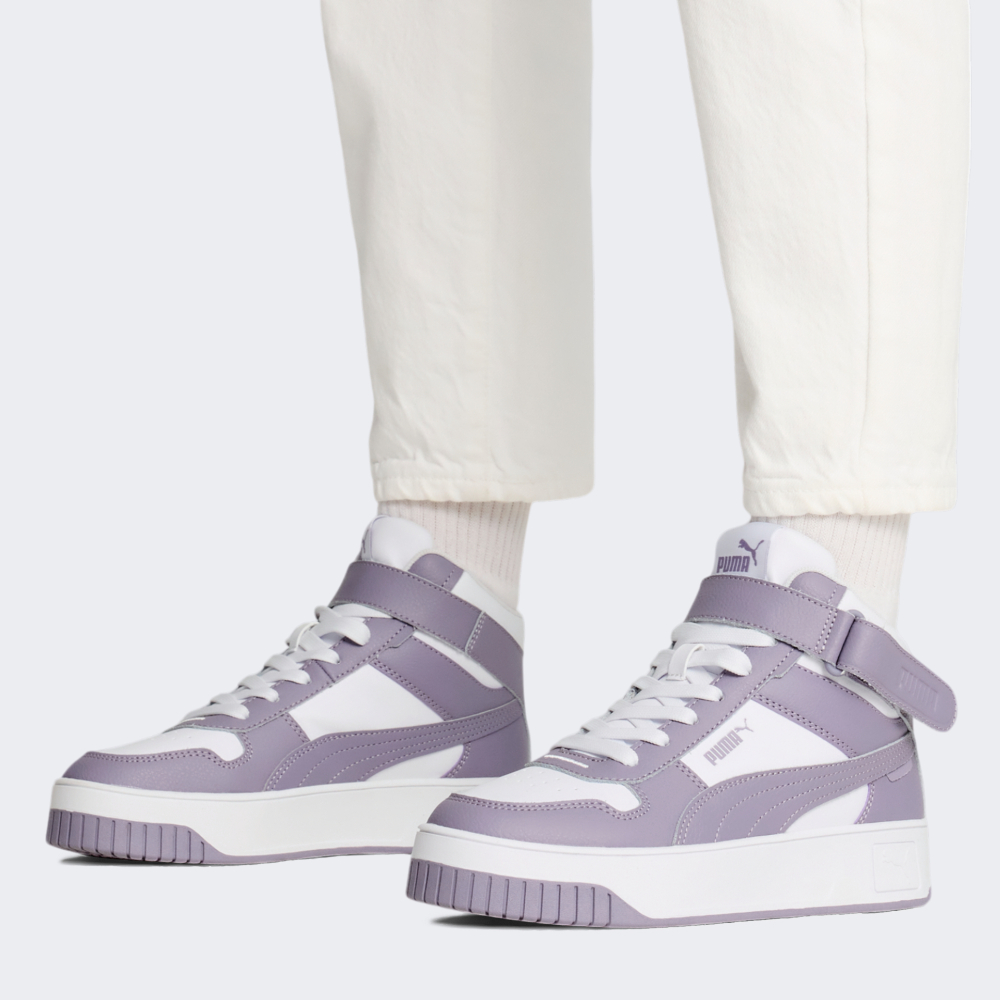 Кеди Puma Carina Street Mid відтворюють класичний силует моделей 80-х років та невимушений шик каліфорнійського стилю, який був переосмислений для сьогодення, щоб стати частиною повсякденного гардероба. Їх верх виготовлено з поєднання натуральної та синтетичної шкіри, що не лише гарантуватиме міцність, але й забезпечуватиме легкість у догляді. Перфоровані отвори створюватимуть приємний мікроклімат всередині взуття протягом усього дня. Злегка завищений силует зі шнурівкою та липучкою надаватиме чудову фіксацію стопи, завдяки чому Ви почуватиметеся впевнено навіть під час довгих прогулянок. Плоска гумова підошва сприятиме стійкості та надійне зчеплення з поверхнями, чи то тротуар міста, чи гладенька підлога у приміщенні. Універсальний дизайн кедів дозволятиме гармонійно поєднувати їх як зі спортивним, так і з кежуал-образом, додаючи нотку ретро-шарму та сучасної елегантності у Ваш стиль. Фірмові смужки Formstrip та логотип підкреслюватимуть Вашу відданість легендарному бренду. Puma піклується про зниження впливу на довкілля, тому верх щонайменше на 30% та підошва принаймні на 10% виготовлені з перероблених матеріалів, а шкіра сертифікована відповідно до протоколу Leather Working Group.