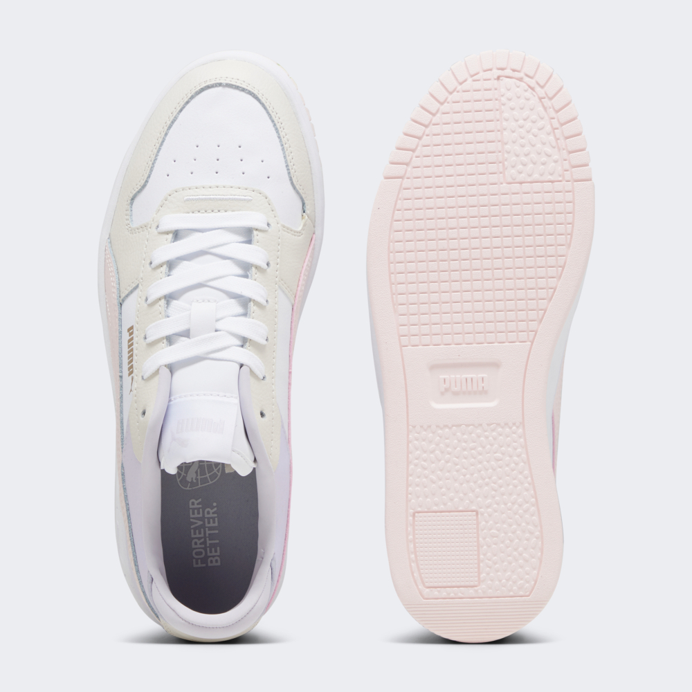 Кеди Puma Carina Street створені у ретро-стилі, який нагадує про моду 80-х років. Їх дизайн натхнений трендами минулого та створений для того, щоб Ви відчували невимушеність у кожному кроці. Шкіряний верх із синтетичними накладками доповнено перфорованими отворами, тому Вашим ногам гарантовано комфорт навіть під час тривалих прогулянок. Класична система шнурівки надаватиме відмінну фіксацію, щоб ніщо не стало на заваді Ваших планів. Потовщена гумова підошва з текстурованим носком та п’ятою додаватиме стійкості та впевненості кожному кроку. Кеди стануть ідеальним вибором для тих, хто хоче створювати яскраві образи, залишаючись вірним комфорту та бездоганному стилю. Вони декоровані елементами в ніжних кольорах та смужками Formstrip, що надаватиме елегантності та підкреслюватиме Вашу відданість бренду. Puma піклується про зниження впливу на довкілля, тому матеріал верху містить щонайменше 20% перероблених волокон.
