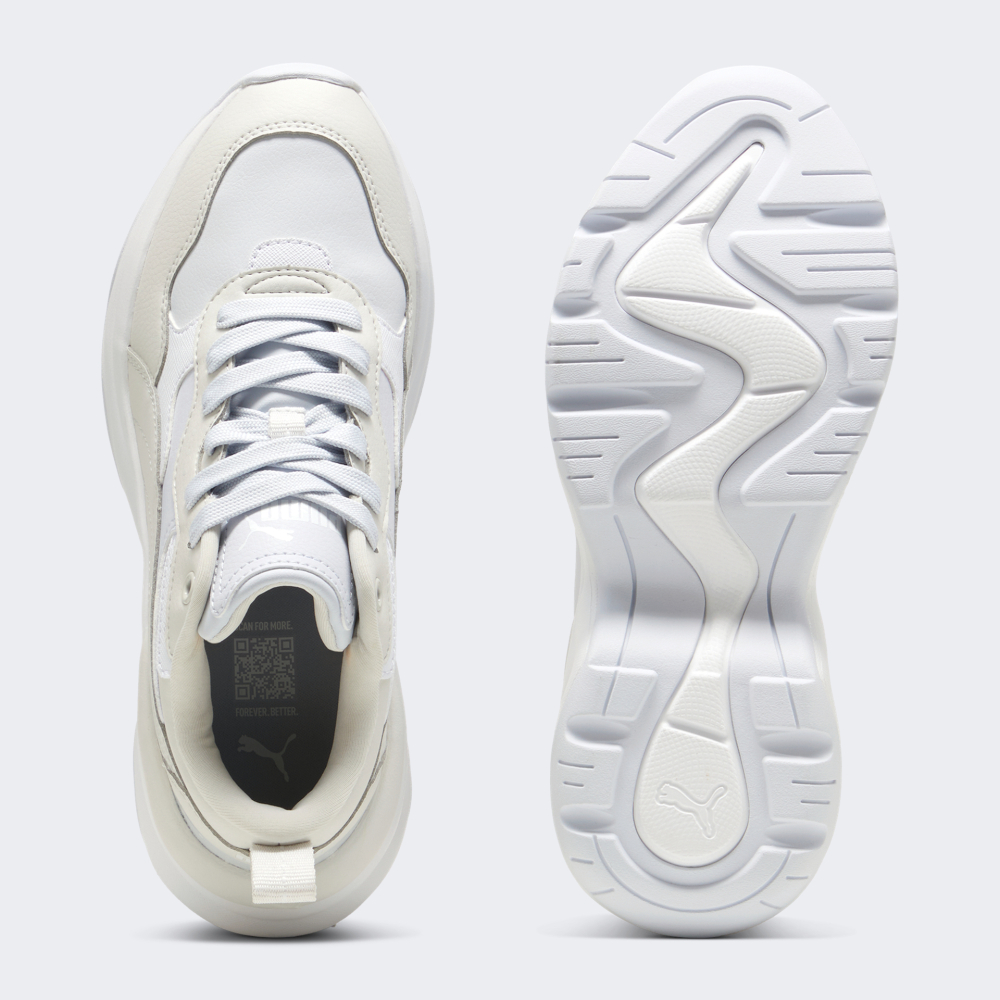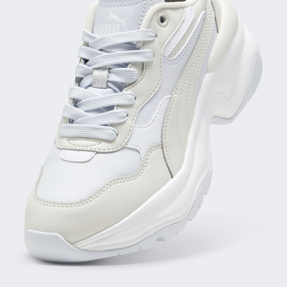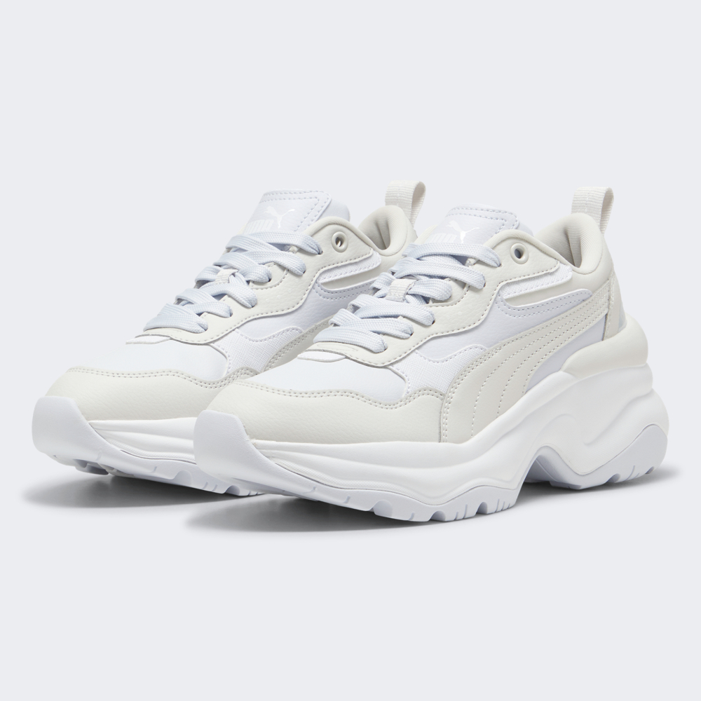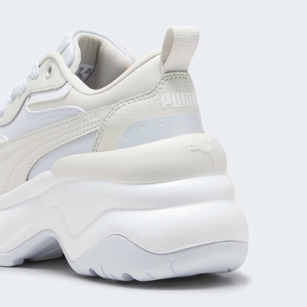 Кросівки Puma Cilia Wedge відтворюють ретро дизайн, який був натхненний енергійною атмосферою 90-х років, тому привертатимуть до Вас увагу на кожному кроці. Їх синтетичний верх виготовлено з різними сміливими накладками та вигнутими лініями, що створюватиме стильний й сучасний вигляд. Висока проміжна підошва у поєднанні з устілкою SoftFoam забезпечуватиме поглинання усіх ударних навантажень при ходьбі. Гумова підметка зі спеціальним малюнком протектора сприятиме стійкості та зчепленню з поверхнями, щоб Ви могли впевнено вирушати у повсякденних справах. Кросівки декоровані логотипом та фірмовими смужками Formstrip, що підкреслюватиме Вашу прихильність до спортивного стилю бренду. Puma піклується про зниження впливу на довкілля, тому матеріал верху містить щонайменше 20% перероблених волокон, що є одним з кроків до кращого майбутнього.