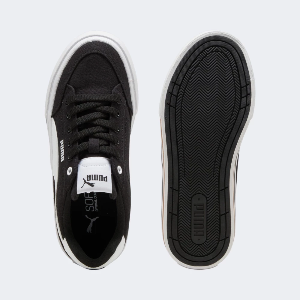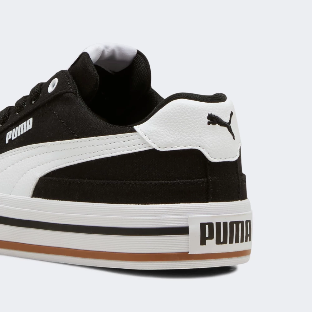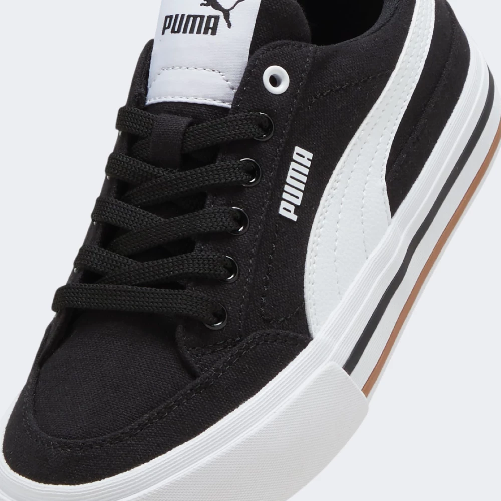 Кеди Puma Court Classic Vulc Fs Jr — це стильне переосмислення класичного тенісного силуету, яке вдало поєднує дух спортивної спадщини та сучасні тенденції вуличної моди. Текстильний верх із синтетичними елементами дарує комфорт навіть під час довгих активних днів. Класична шнурівка щільно фіксує стопу, забезпечуючи стабільність у кожному русі — від швидкого кроку коридорами школи до активних ігор на вулиці. Устілка SoftFoam+ додає м’якості та легкої амортизації, щоб кожен крок був максимально комфортним. Плоска гумова підошва гарантує зчеплення з поверхнею, а вулканізована конструкція робить кеди більш міцними та витривалими, тож вони легко витримають насичений ритм підліткового життя. Фірмові смужки Formstrip і лаконічний дизайн підкреслюють стиль і любов до перевіреної класики з сучасним настроєм. Модель рекомендована для дітей віком від 8 до 16 років. Puma піклується про зниження впливу на довкілля, тому модель виготовлено з використанням перероблених матеріалів.