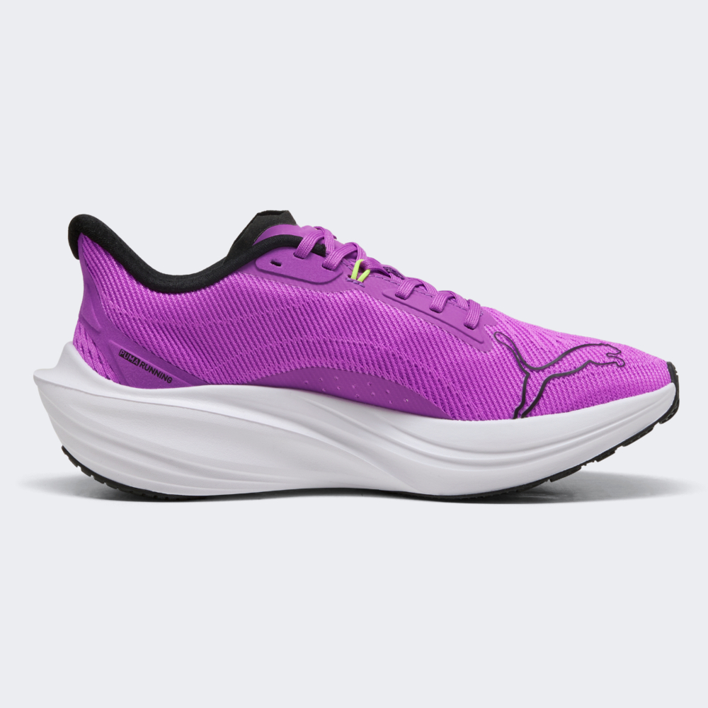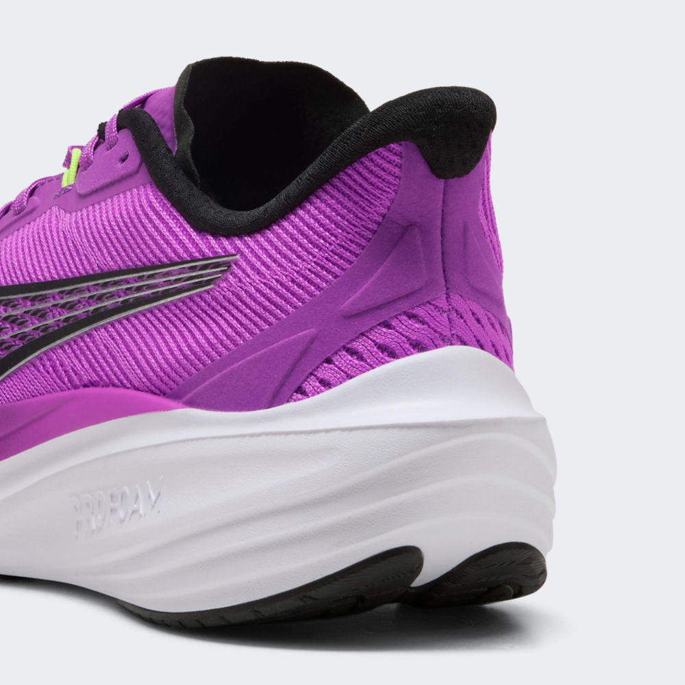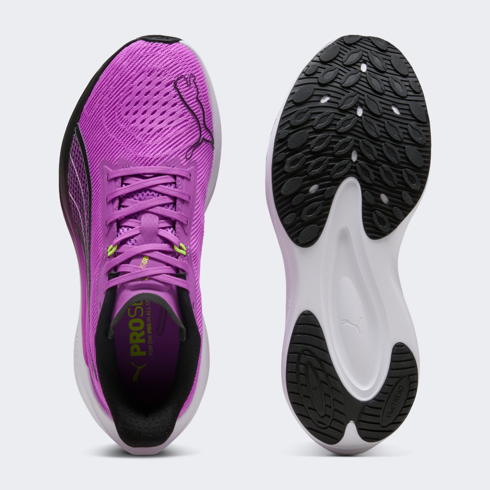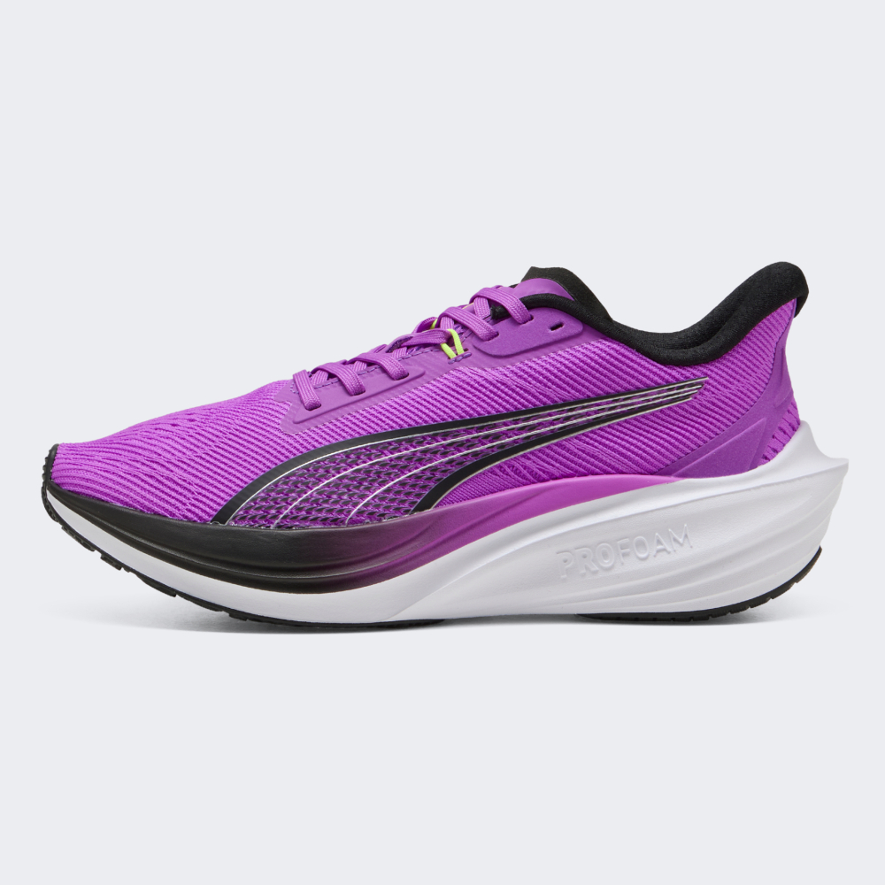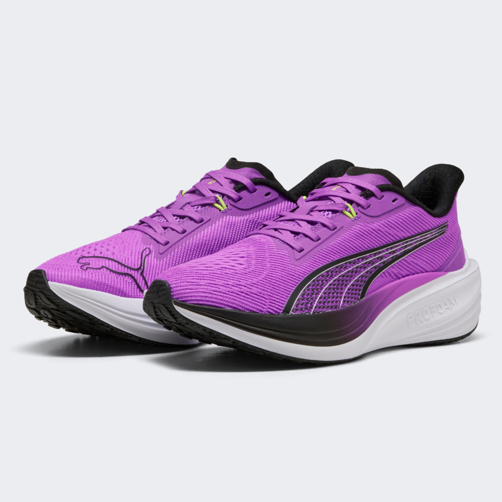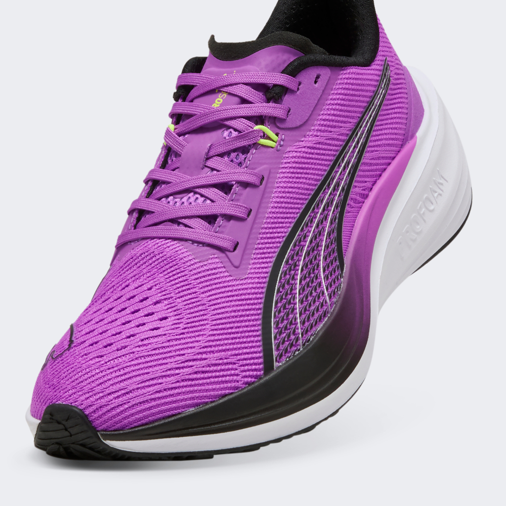 Кросівки Puma Darter Pro допоможуть Вам кинути виклик межам власних можливостей. Вони створені для тих, хто прагне нових досягнень, прискорювати темп і ніколи не зупинятись на досягнутому. Спеціальна сітка верху забезпечуватиме інтенсивну вентиляцію, дозволяючи ногам залишатися в прохолоді навіть під час найдовших пробіжок. Міцна шнурівка та підтримувальна конструкція забезпечуватимуть щільну посадку без зайвого тиску, що гарантуватиме впевненість у кожному русі. Інноваційна проміжна підошва ProFoam ефективно поглинатиме ударні навантаження, що допомагатиме зменшити тиск на суглоби та надаватиме відчуття пружного поштовху вперед. Гумова підметка ProTread з покращеним зчепленням дозволятиме впевнено долати будь-які дистанції. Гнучкі зони на підошві додаватимуть природності кожному кроку та даруватимуть відчуття свободи руху. Насичений фіолетовий колір верху поєднується з білими та чорними елементами підошви, створюючи сучасний спортивний стиль, що відмінно виглядатиме з будь-яким спортивним одягом. Кросівки декоровані логотипами та демонструватимуть Вашу готовність до нових рекордів, вибухової швидкості та незабутніх відчуттів під час кожної пробіжки.