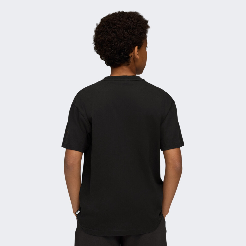Футболка Puma Basketball HoopesTellations Tee B переносить шалений ритм баскетбольного майданчика у повсякденне життя підлітка. Вона виготовлена з м’якої бавовни, яка дарує комфорт упродовж усього дня — на тренуваннях, прогулянках чи зустрічах із друзями. Класичний крій не обмежує активності, дозволяючи дитині вільно рухатись у власному ритмі. Кругла горловина з м’якою стрічкою захищає шкіру від подразнень навіть у найдинамічніші моменти. Футболка декорована яскравим принтом, який передає атмосферу гри у баскетбол та дух суперництва. Надпис Puma Hoops у полум’ї створює емоційний настрій перемоги та натхнення. Ця футболка — не просто одяг, а мотивація до великих звершень для кожного, хто не боїться мріяти масштабно. Модель рекомендована для дітей віком від 8 до 16 років. Puma піклується про зниження впливу на довкілля, тому модель щонайменше на 20% виготовлено з переробленої бавовни.