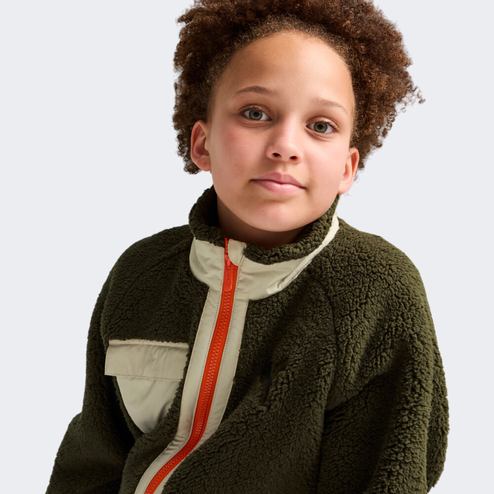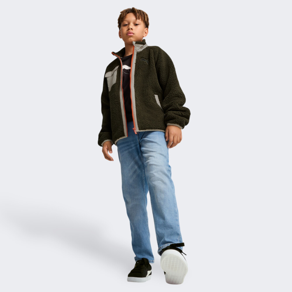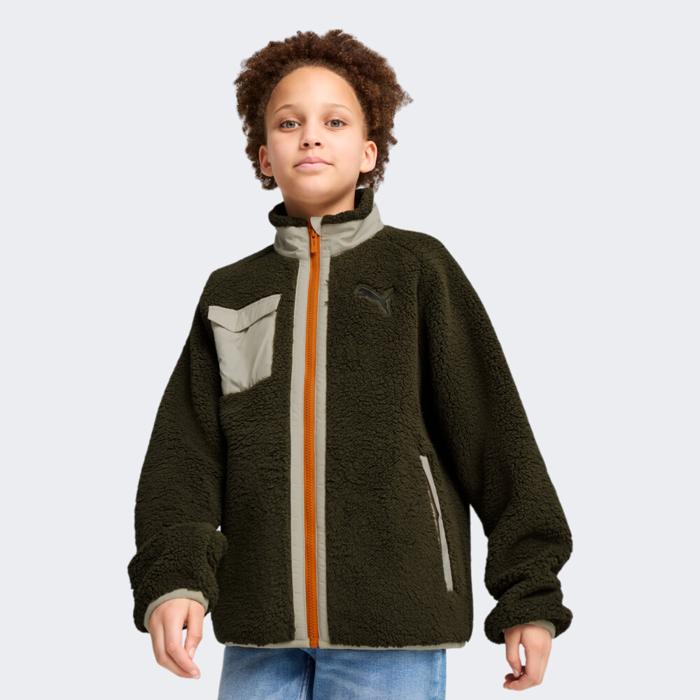 Куртка Puma Hybrid Sherpa Jacket створена для юних модників, які хочуть бути у тренді й водночас насолоджуватися комфортом у прохолодну погоду. Вона виготовлена зі щільного флісу, тому гарантуватиме тепло та затишок протягом усієї прогулянки, ніби дитина загорнута в улюблену ковдру. Класичний крій з рукавами реглан надаватиме достатньо простору для рухів, а еластичні краї на рукавах та знизу куртки запобігатимуть втратам тепла. Високий комір та блискавка по всій довжині забезпечуватимуть зручність під час носіння, а нагрудна та бічні кишені дозволять мати при собі цінні дрібнички такі як ключі та готівка. Куртка декорована невеликим логотипом, який підкреслюватиме прихильність юного модника до спортивного стилю бренду. Модель рекомендована для дітей віком від 8 до 16 років. Puma піклується про зниження впливу на довкілля, тому матеріал виробу містить перероблені волокна, що є одним з кроків до кращого майбутнього.