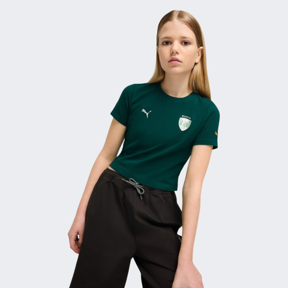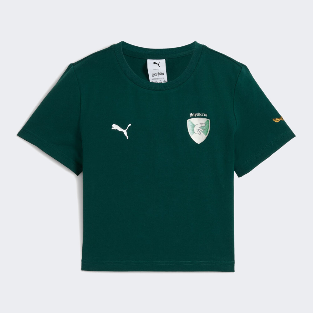 Колекція Puma x Harry Potter — це магічне поєднання легендарного спортивного стилю з атмосферою пригод, чарів і квідичу. У кожному елементі цієї співпраці втілено дух Гоґвортсу, відвагу героїв і захоплення чарівним світом, що підкорив мільйони сердець. Футболка Puma X Harry Potter Baby Tee створена для сміливих підлітків, які не бояться виділятись, вірять у свою силу й ніколи не відступають від мрії. Вона уособлює поєднання спортивного драйву та магії, яка надихає діяти розумно, впевнено і з характером. Модель виготовлена з еластичної бавовняної тканини, що надзвичайно м’яка на дотик і гарантує максимальний комфорт упродовж усього дня — чи це уроки у школі, рухливі активності, чи веселі зустрічі з друзями. Злегка укорочений крій додає сучасного звучання та дає повну свободу рухів — саме те, що потрібно у вирі активного життя. А кругла горловина з м’якою внутрішньою стрічкою дбайливо прилягає до шиї, не натирає шкіру й дозволяє зосередитись лише на важливому. Білий логотип Puma підкреслює силу духу та рішучість, а герб Слизерину з елегантною змією — це символ вродженої інтуїції, стратегічного мислення та майстерності. Футболка для тих, хто, як справжні слизеринці, знає, коли діяти м’яко, а коли — безкомпромісно. Дизайн натхнений атмосферою квідичу та чарівного світу Гаррі Поттера — він надає образу загадковості, впевненості та магічної сили. Модель рекомендована для дітей віком від 8 до 16 років — для тих, хто мріє по-справжньому, діє сміливо та вірить: справжня магія — у тобі.
