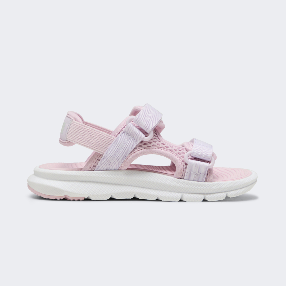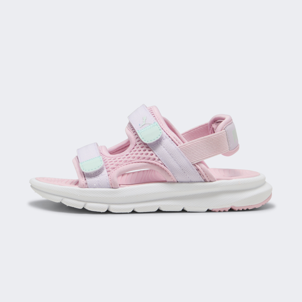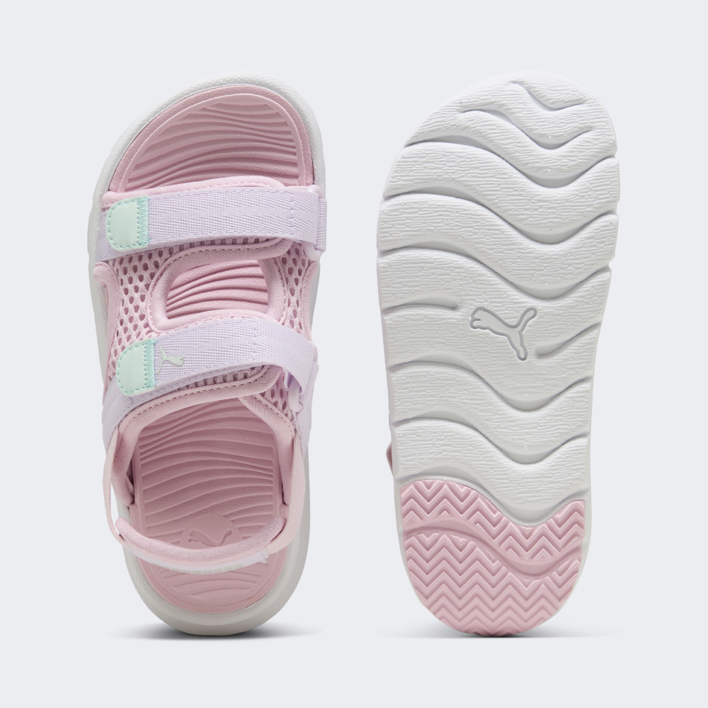 Сандалі Puma Evolve Sandal Ps — ідеальний супутник для літніх пригод, який подарує Вашій дитині максимум зручності, впевненості та радості від кожного кроку. Верх виготовлено з міцного текстилю у поєднанні з сіткою, що забезпечує надійну фіксацію ніжки та оптимальний повітрообмін. Маленькі ніжки залишатимуться в комфорті навіть у найспекотніші дні. Конструкція моделі передбачає еластичний ремінець із м’якою накладкою на п’яті та ремінці з липучками, завдяки чому дитина зможе легко взувати або знімати взуття самостійно. Проміжна підошва з м’якої піни дарує кожному кроку легкість і пружність, а анатомічна устілка дбайливо підтримує природне положення стопи, сприяючи правильному розвитку ходи. Гумова підметка з рельєфним малюнком гарантує впевнене зчеплення на будь-якій поверхні — від тротуарної плитки до дитячого майданчика. Ніжне поєднання рожевого кольору з м’ятними деталями додає моделі свіжості, легкості та казкової чарівності. А логотипи Puma виступають стильним акцентом, що підкреслює любов до активного способу життя та сучасної дитячої моди. Модель рекомендовано для дітей віком від 4 до 8 років, які завжди в русі та відкриті до нових вражень.
