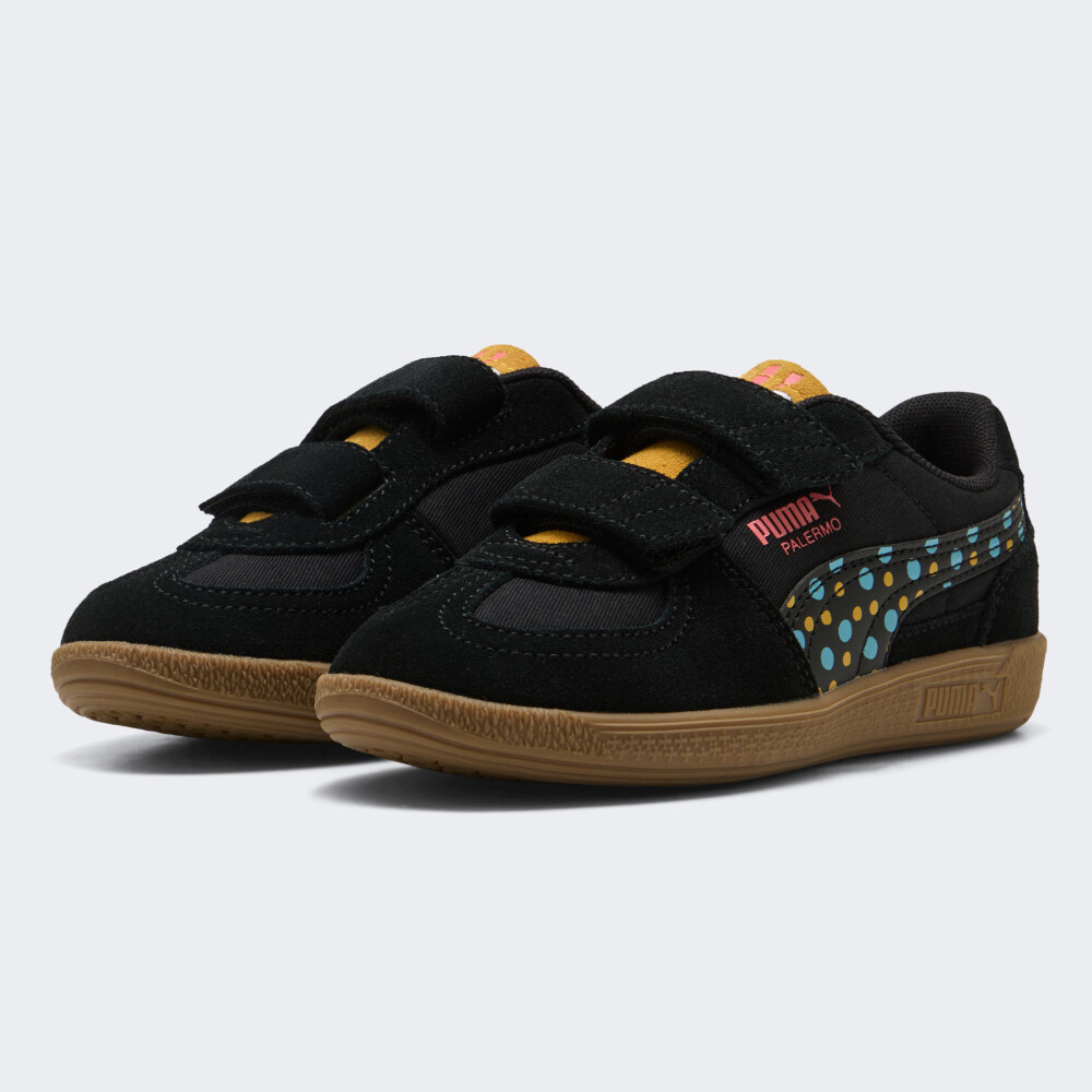 Кеди Puma Palermo Moody Cat V Ps — це яскраве поєднання легендарного стилю та веселого характеру, створене спеціально для маленьких дослідників, які не можуть всидіти на місці. Дизайн натхненний культовою ретро-моделлю з архівів бренду, яка підкорила серця британських футбольних фанатів ще у 80-х, але тепер отримала грайливе оновлення для дитячих пригод. Текстильний верх із м’якими замшевими накладками дарує комфорт навіть під час найдовших ігор. Зручні липучки дозволяють легко та швидко взуватися без допомоги дорослих, а надійна фіксація гарантує, що кеди залишаться на місці. Міцна гумова підошва забезпечує чудове зчеплення з будь-якими поверхнями та не залишає слідів на підлозі навчальних закладів. А грайливі деталі з котиком Moody Cat та яскраві акценти додають настрою, перетворюючи кожен день на маленьку пригоду. Модель рекомендовано для дітей віком від 4 до 8 років — для тих, хто хоче виглядати стильно й почуватися вільно під час кожної миті дитинства. Puma піклується про зниження впливу на довкілля, тому модель виготовлено з використанням перероблених матеріалів.