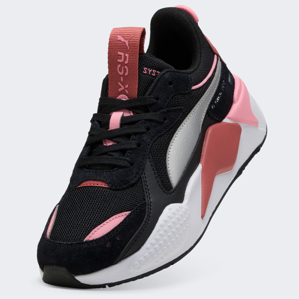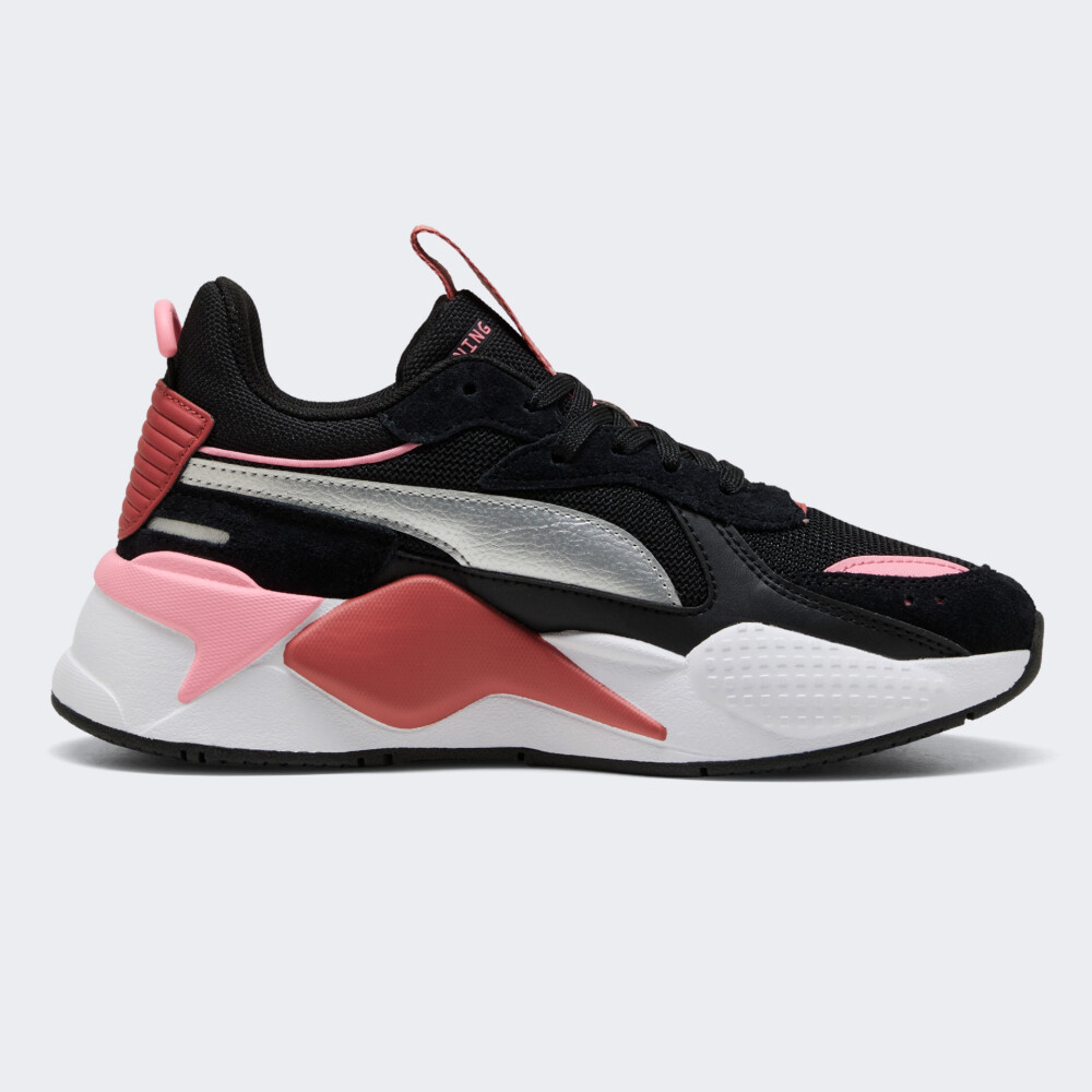 Моделі Puma RS-X поєднують у собі новаторський ретро дизайн із сучасним поєднанням матеріалів, що обов'язково сподобається тим, хто хоче виразити свою індивідуальність. Кросівки Puma RS-X Metallic Jr додадуть щоденним образам ретро-шарму й футуристичного настрою, що не залишить нікого байдужим. Легкий текстильний верх із посиленими накладками поєднує чудову вентиляцію з підвищеною міцністю, щоб кросівки витримували активний ритм життя та залишалися комфортними з ранку до вечора. Класична шнурівка надійно утримує стопу, а зручні петельки на п’яті та язичку роблять взування максимально швидким і простим. Проміжна підошва зі спіненого матеріалу забезпечує м’яку, пружну амортизацію, яка додає легкості кожному кроку й допомагає залишатися у русі без втоми. Гумова підметка з комбінованими протекторами гарантує зчеплення на різних поверхнях — від асфальту до плитки чи шкільного подвір’я. Глибокий чорний колір кросівок є основою для яскравих металізованих акцентів, а масивна підошва з геометричними деталями підкреслює сміливий характер моделі. Модель рекомендована для дітей віком від 8 до 16 років.
