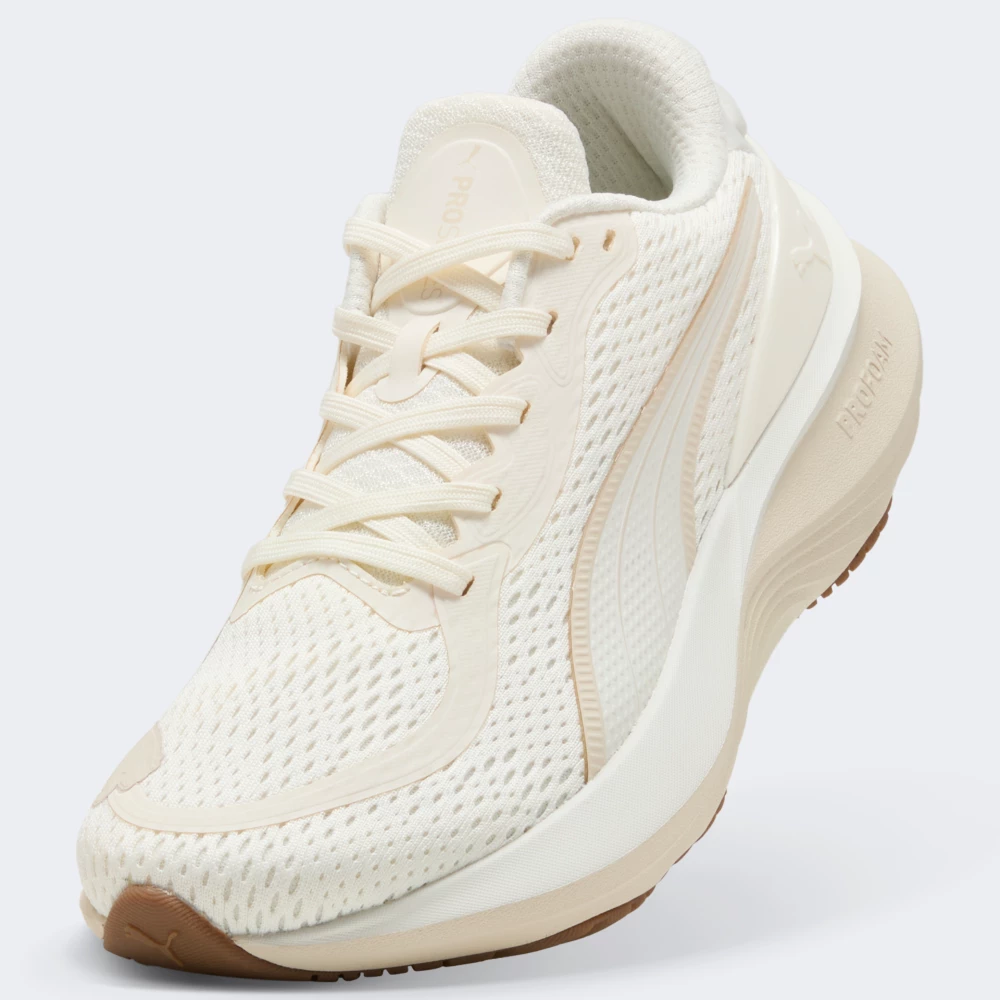 Кросівки Puma Scend Pro 2 Jr створені для активних підлітків, щоб кожен їх день приносив ще більше задоволення. Сітчастий верх дарує відчуття свіжості й комфорт від ранку й до вечора. М’який анатомічний комір делікатно підтримує щиколотку, а класична шнурівка надійно фіксує стопу, дозволяючи зосередитися на русі, а не на взутті. Легка проміжна підошва, виготовлена зі спеціального матеріалу ProfoamLite, чудово поглинає удари та зменшує втому під час бігу, стрибків або просто тривалих прогулянок. Вона створена для того, щоб кожен крок був м’яким, енергійним і впевненим — саме те, що потрібно для активного ритму сучасного підлітка. Гумова підметка PumaGrip з оновленим малюнком протектора ProTread дарує надійне зчеплення з будь-якими поверхнями — від гладеньких коридорів школи до плитки в парку чи асфальтованих доріжок. Ніжний бежевий відтінок, сучасний спортивний силует, фірмові смужки Formstrip і логотип Puma роблять кросівки не лише зручними, а й стильними. Модель рекомендовано для дітей віком від 8 до 16 років — для тих, хто не сидить на місці та обирає рух, свободу і стиль щодня.