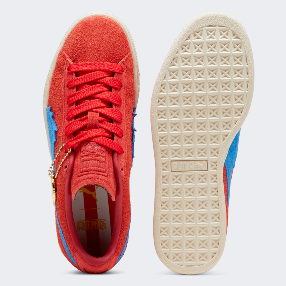 Лінійка Puma X One Piece поєднує у собі класичний вуличний стиль з пригодами у всесвіті One Piece, оскільки декорована піратськими прапорами та ілюстраціями з найпопулярнішого у світі аніме. Кеди Puma Suede One Piece Jr поєднують у собі знайомий дизайн легендарної моделі з естетикою аніме. Їх верх виготовлено з ворсистої замші та шкіряних накладок, що не лише створюватиме неперевершений зовнішній вигляд, а й гарантуватиме Вашій дитині комфортні відчуття протягом усього дня. Гумова підошва забезпечуватиме надійне зчеплення з поверхнями, щоб кожний крок був впевненим. Унікальний дизайн моделі доповнено елементами колекції, що демонструватиме прихильність до найпопулярнішого у світі аніме, дозволяючи стильно вирушати назустріч новим пригодам дня. Модель рекомендована для дітей віком від 8 до 16 років. Puma піклується про зниження впливу на довкілля, тому шкіра вироблена екологічно відповідальним шляхом, пройшла аудит та сертифікацію відповідно до протоколу організації Leather Working Group.