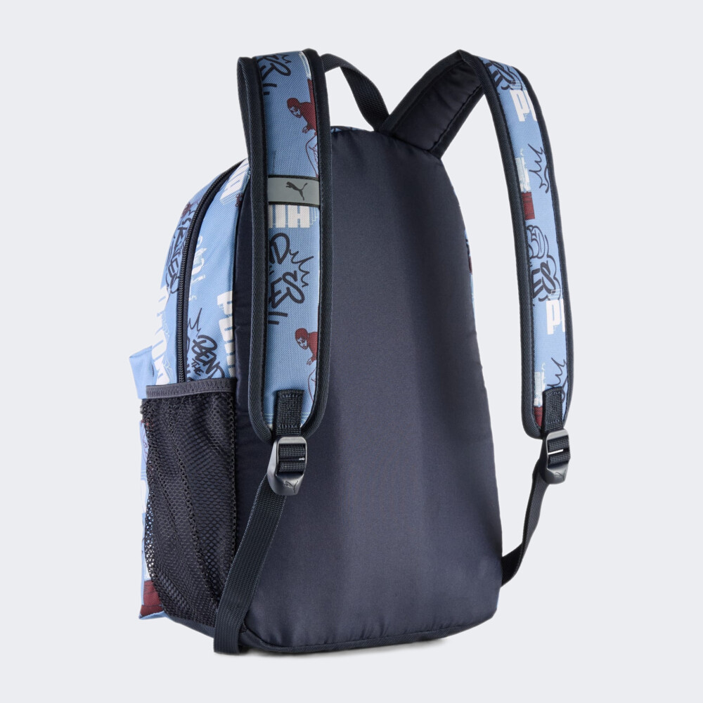 Рюкзак Puma Phase Aop Small Backpack створений для тих підлітків, які не бояться бути собою та рухаються швидше за рутину. Це ідеальний супутник для шкільних буднів, прогулянок з друзями чи поїздок, коли важливо мати все потрібне під рукою — і виглядати стильно. Він виготовлений з якісного синтетичного матеріалу, який вирізняється зносостійкістю та легкістю в догляді, оскільки забруднення достатньо протерти вологою тканиною. Основне відділення надасть достатньо простору для перенесення потрібних речей, а передня кишеня вмістить найнеобхідніші дрібні предмети. Бічна сітчаста кишеня потрібна для пляшки з водою, щоб можна було швидко втамувати спрагу. Регульовані плечові ремені з м’якими вставками подбають про комфорт, навіть коли рюкзак завантажено по максимуму. Суцільний графіті-принт створює атмосферу молодіжного драйву та свободи. Написи Puma і "Bend the Rules" не просто прикрашають — вони транслюють філософію незалежності та сили характеру. Puma піклується про зниження впливу на довкілля, тому матеріал виробу виготовлено щонайменше на 90% з перероблених волокон.