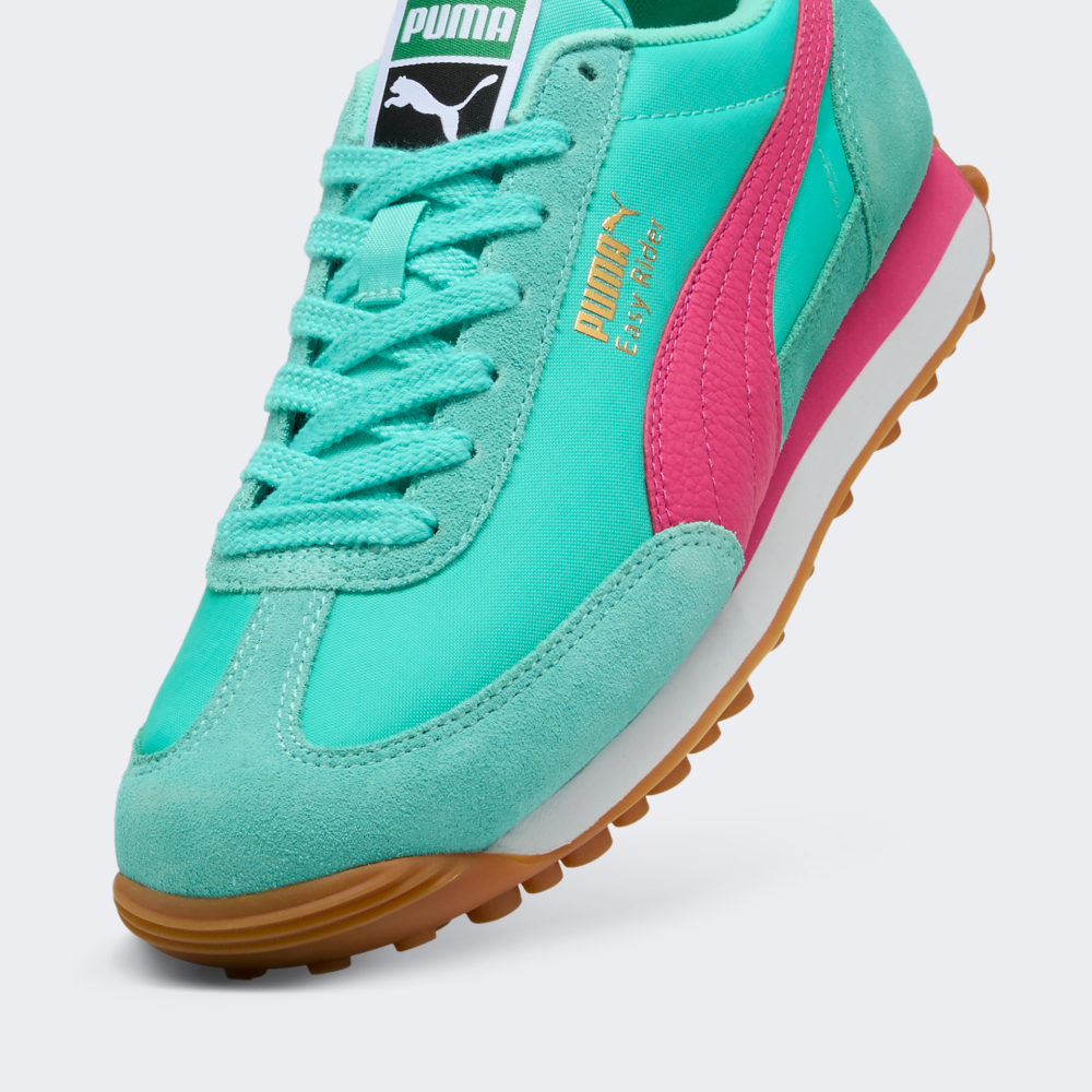 Кросівки Puma Easy Rider Vintage додадуть легкого вінтажного шарму до Вашого повсякденного стилю, адже їхній дизайн натхненний моделями, що дебютували наприкінці 70-х років. Верх виконано на основі міцного нейлону, доповненого замшевими накладками, які надають автентичного ретро вигляду та підвищують зносостійкість. Класична шнурівка щільно фіксує стопу, тому дарує впевненість у кожному кроці, незалежно від ритму Вашого дня. Легка пінна проміжна підошва забезпечує амортизацію, зменшуючи ударні навантаження під час ходьби. Особливої уваги заслуговує міцна гумова підметка: вона заходить на носову частину, має фірмовий шипований малюнок, що гарантує максимальне зчеплення з різними міськими поверхнями. Насичені кольори додають динаміки, створюючи яскравий акцент у будь-якому образі, а логотипи Puma та фірмові смужки Formstrip елегантно підкреслюють Вашу повагу до вічної класики бренду. Puma піклується про зниження впливу на довкілля, тому шкіра вироблена екологічно відповідальним шляхом, пройшла аудит та сертифікацію відповідно до протоколу організації Leather Working Group.