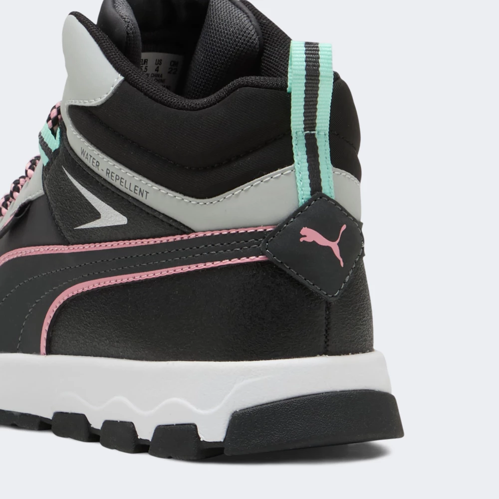 Кросівки Puma Evolve Trail Jr подарують Вашій дитині неперевершений комфорт під час прогулянок, дозволяючи насолоджуватись будь-якими активностями на свіжому повітрі не залежно від погоди за вікном. Верх моделі з синтетичних та текстильних матеріалів доповнено водовідштовхувальним покриттям Water Repellent, яке надаватиме захист від легкого дощу, даруючи відчуття сухості та затишку протягом усього дня. Завищена конструкція зі щільною шнурівкою надаватиме надійну фіксацію та запобігатиме проникнення пилу та бруду всередину. Устілка SoftFoam та проміжна підошва EVA забезпечуватимуть легку амортизацію, наповнюючи кожний крок легкістю та м'якістю. Гумова підметка моделі сприятиме стійкості та зчепленню з поверхнями, що дозволятиме дитині впевнено вирушати на прогулянки. Кросівки декоровані яскравими елементами та логотипом, який підкреслюватиме прихильність до спортивного стилю Puma. Модель рекомендована для дітей віком від 8 до 16 років.