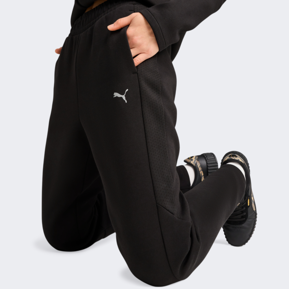 Колекція Puma Evostripe об'єднує стиль і функціональність, створюючи ідеальний вибір для енергійних людей. Вона вирізняється сучасним дизайном з акцентом на свободу рухів, тому підходить для тренувань, спорту та активного відпочинку. Спортивні штани Puma Evostripe Sweatpants Dk op пропонують ідеальне поєднання бездоганного стилю та інноваційної функціональності, що зробить їх Вашим незамінним супутником на шляху до поставлених цілей. Вони виготовлені з високоякісної тканини з технологією відведення вологи, яка даруватиме відчуття сухості та свіжості навіть під час інтенсивних навантажень. Ергономічний дизайн забезпечуватиме повну свободу рухів, дозволяючи Вам зосередитися на досягненні найкращих результатів. Еластичний пояс зі внутрішнім шнурком гарантуватиме надійну фіксацію, що надаватиме впевненості у кожному русі. Бічні кишені стануть практичним рішенням для зберігання необхідних дрібниць. Штани декоровано стильним логотипом Puma, який підкреслюватиме Вашу прихильність до легендарного спортивного бренду. Puma піклується про зниження впливу на довкілля, тому модель містить щонайменше 20% перероблених волокон.