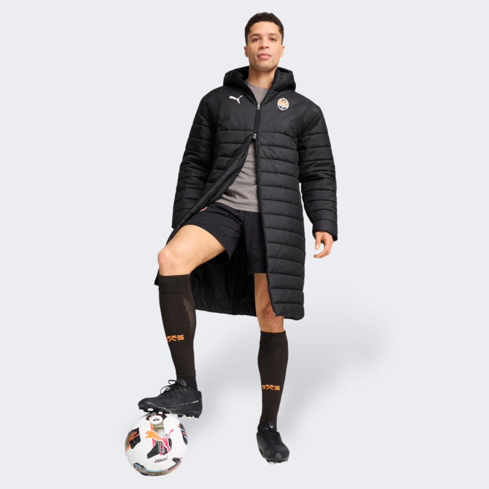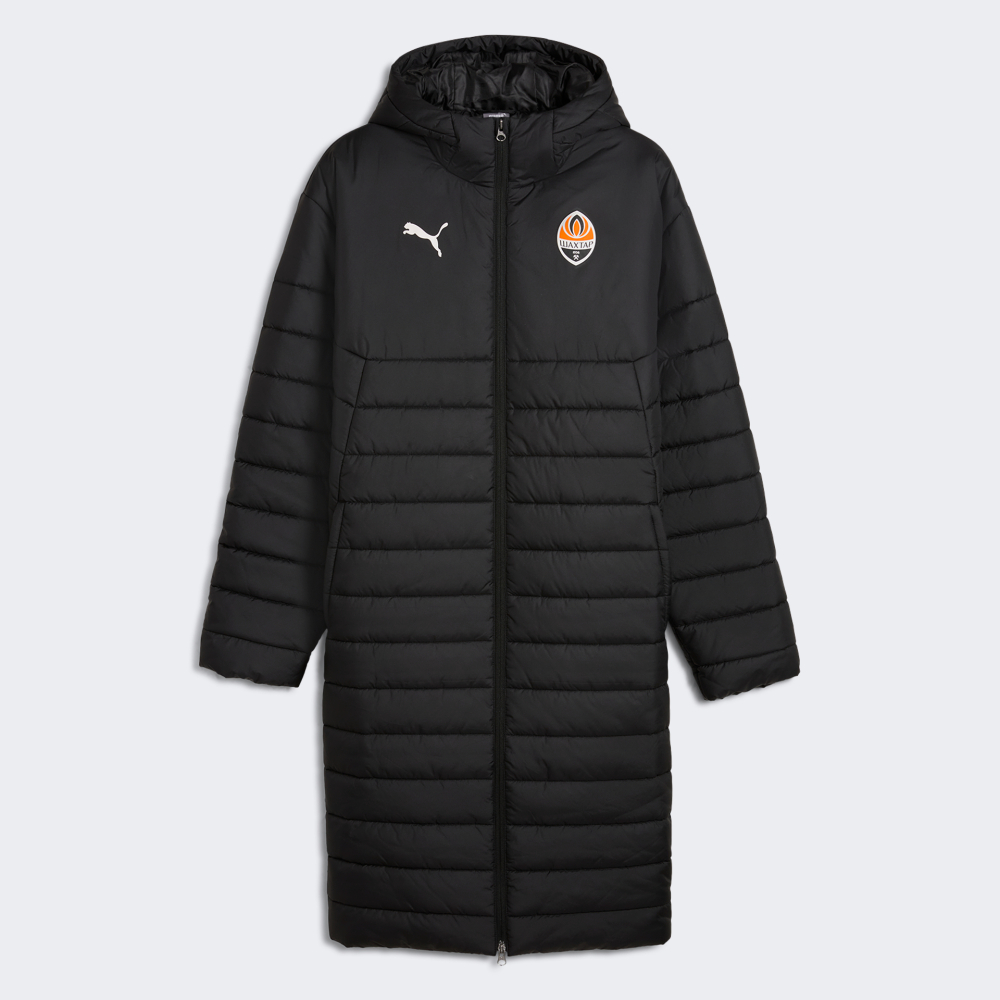 Важливою частиною глобальної стратегії Puma є розвиток футбольного напряму, тому було підписано контракт з українською командою ФК Шахтар. Колекція Puma FCSD натхненна духом футболу та вражає поєднанням стильного дизайну й функціональності. Куртка Puma FCSD Bench jacket призначена для відданих фанатів команди. Вона виготовлена з якісних матеріалів та має синтетичний утеплювач, що у поєднанні з кращими технологіями бренду гарантуватиме тепло та затишок. Класичний подовжений крій дозволить Вам відчувати себе комфортно на лаві запасних чи трибунах, а блискавка з подвійним бігунком надаватиме максимальну зручність під час носіння. Капюшон та високий комір захистять Вас від несприятливих погодних умов, а бічні кишені на блискавках надійно збережуть цінні дрібнички протягом усієї гри. Куртка декорована логотипом та емблемою команди Шахтар. Puma піклується про зниження впливу на довкілля, тому модель виготовлена зі 100% перероблених волокон.