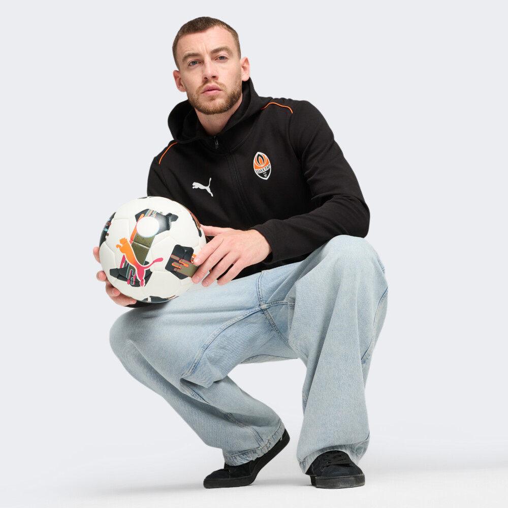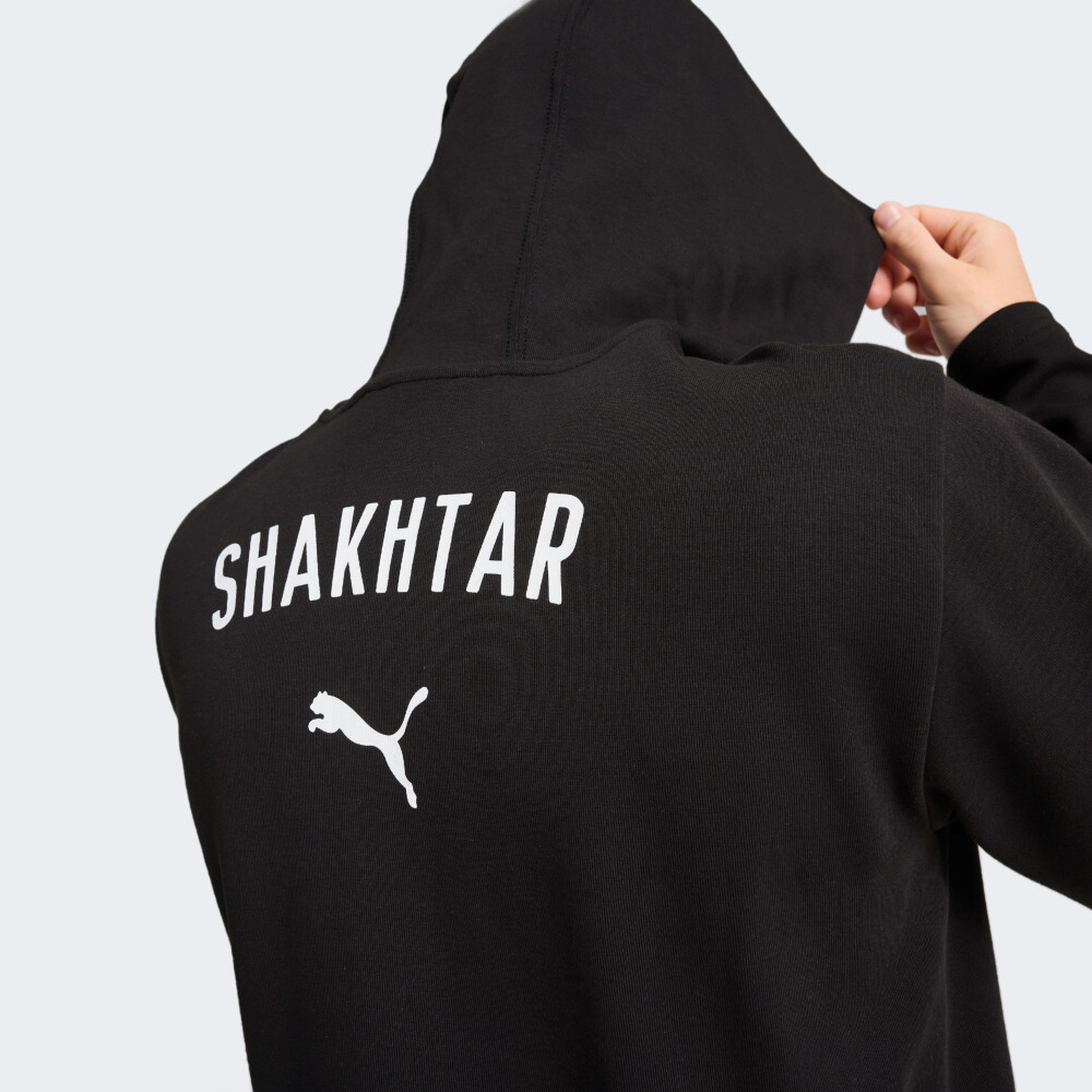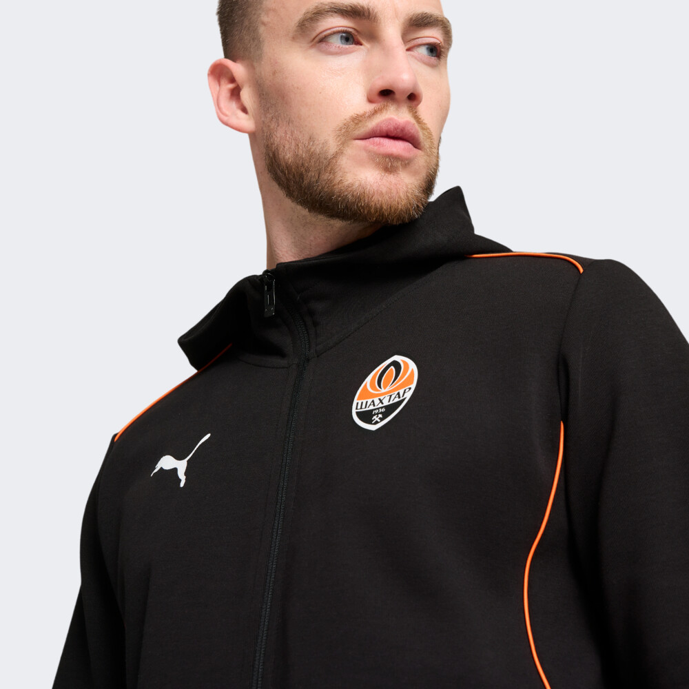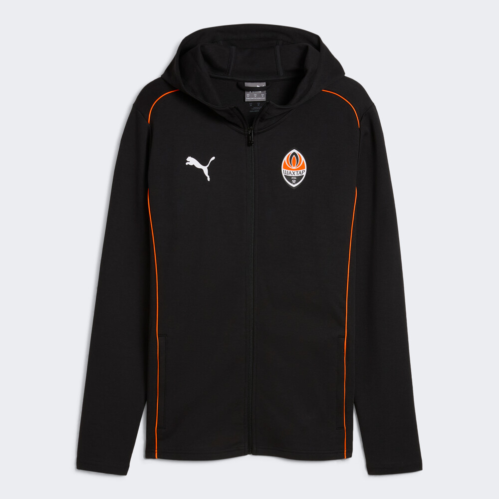 Важливою частиною глобальної стратегії Puma є розвиток футбольного напряму. Тому у 2020 р. було підписано п’ятирічний контракт з українською командою ФК Шахтар. Кофта Puma FCSD Casuals Hooded Jkt входить в офіційну колекцію повсякденного одягу гравців ФК «Шахтар». Вона виготовлена з якісної тканини, яка гарантуватиме комфортні відчуття протягом усього дня. Приталений крій не сковуватиме Ваших рухів, а блискавка по всій довжині забезпечить зручність під час носіння. Високий комір та капюшон захистять від несприятливих проявів погоди, а бічні кишені на блискавках дозволять мати при собі корисні дрібнички. Кофта обов'язково має бути в гардеробі справжнього фаната ФК «Шахтар». Puma піклується про зниження впливу на довкілля, тому модель містить щонайменше 20% переробленої бавовни.