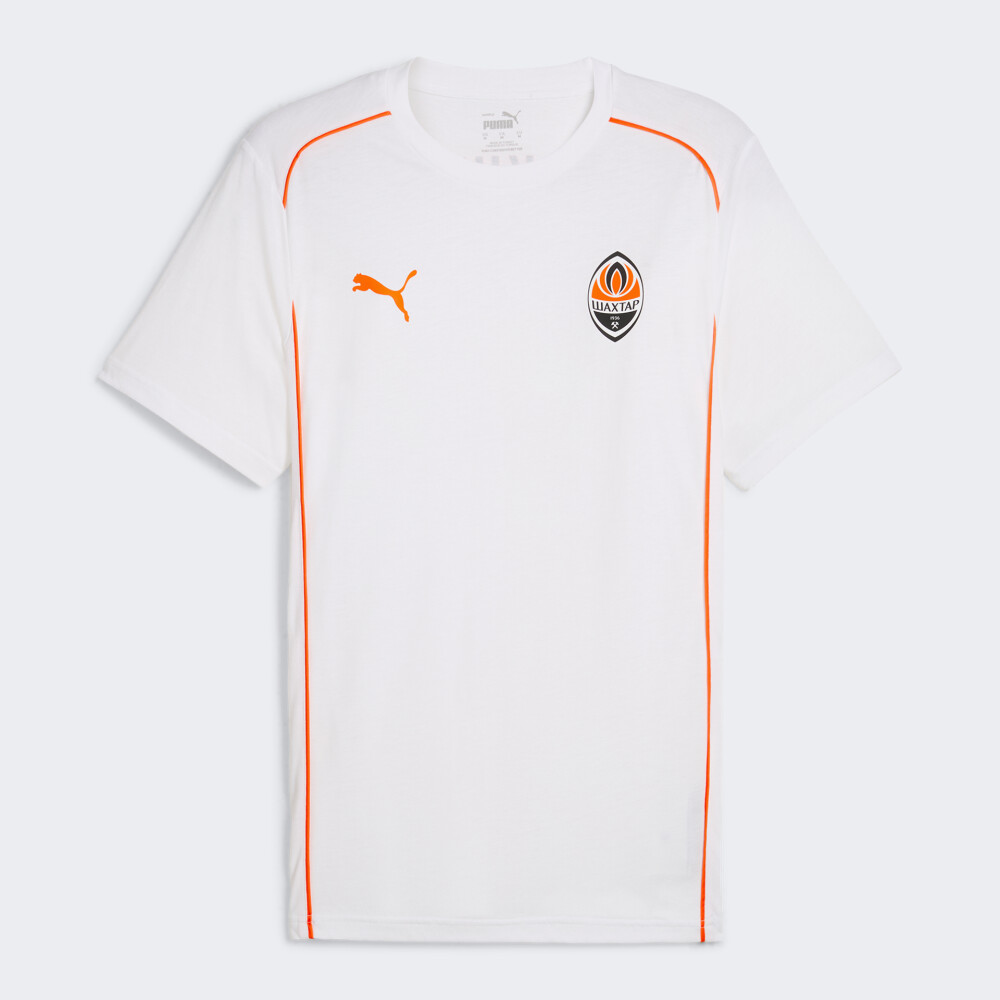 Важливою частиною глобальної стратегії Puma є розвиток футбольного напряму. Тому у 2020 р. було підписано п’ятирічний контракт з українською командою ФК «Шахтар». Проявіть свою прихильність до улюбленої команди. Футболка Puma FCSD Casuals Tee входить в офіційну колекцію повсякденного одягу гравців ФК «Шахтар». Вона виготовлена з легкої тканини, яка швидко висихає та відводить піт від шкіри для відчуття сухості протягом усього дня. Класичний крій не сковуватиме Ваших рухів, а кругла горловина та стрічка з тканини, нашита на задню частину коміра, запобігатимуть подразненню шкіри. Футболка обов'язково має бути в гардеробі справжнього фаната ФК «Шахтар».