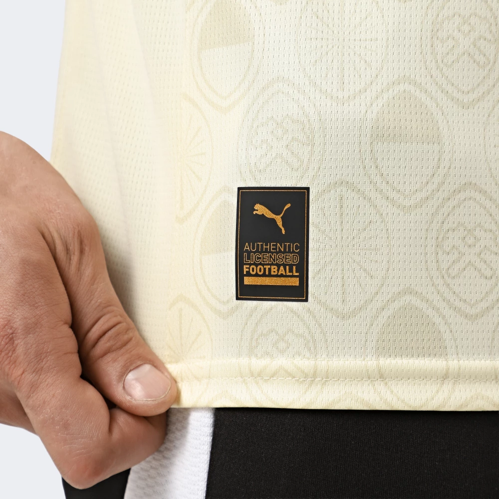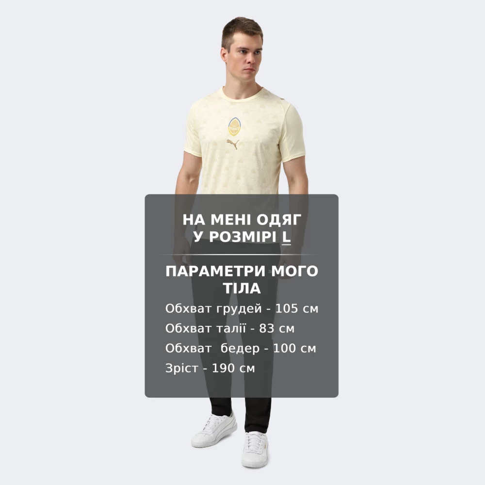 Бренд Puma, у межах глобальної стратегії розвитку футболу, підписав контракт із ФК «Шахтар» — клубом з незламним характером, легендарною історією та мрією, що горить у серцях уболівальників з кожним матчем. 15-разовий чемпіон України, володар Кубків та Суперкубків — «Шахтар» це більше, ніж команда. Це символ мужності, віри та прагнення до перемоги. Футболка Puma FCSD Third Jersey Replica w/o Sponsor — це емоційний зв’язок із 90-річною історією клубу, з глибокою повагою до минулого та впевненим кроком у майбутнє. Двосторонній жакардовий матеріал не лише надає моделі вишуканого вигляду, а й дарує комфорт у кожному русі — чи то на трибунах стадіону, чи на міських вулицях. Технологія dryCELL активно відводить вологу, даруючи відчуття свіжості й легкості, навіть під час найемоційнішої гри. Класичний крій з рукавами реглан забезпечує свободу рухів, щоб Ви почувалися впевнено у будь-якій ситуації. А м’яка внутрішня обробка круглої горловини піклується про Вашу шкіру у динамічні моменти дня. Ця футболка стане маніфестом віри у силу спорту, у клуб, у перемоги майбутнього. На емблемі клубу гордо зображено золотий світанок — символ нового початку, натхнення та великого підйому, що чекає на прийдешні покоління «Шахтаря». Puma піклується про зниження впливу на довкілля, тому модель виготовлено з використанням перероблених матеріалів.