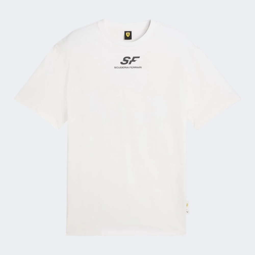 Puma Ferrari Car Graphic Tee II — футболка для тих, хто цінує динаміку автоспорту у щоденному стилі. Біла основа підкреслює чистий силует і дозволяє яскравому червоному принту на спині звучати головним акцентом. Класичний крій із коротким рукавом дарує свободу рухів, а U-подібна кругла горловина сидить комфортно протягом усього дня. На внутрішній стороні коміра нашита м’яка тканинна стрічка, що запобігає подразненню шкіри. На грудях розміщений акуратний чорний логотип/напис Scuderia Ferrari, який підкреслює характер моделі. Великий принт із зображенням гоночного боліда Ferrari в червоному з чорними та сірими деталями додає відчуття швидкості й енергії бренду. Бавовняна основа приємна на дотик і дихає, забезпечуючи комфорт у теплу погоду. Модель створена в рамках колекції Puma Ferrari для повсякденного носіння влітку та у весняно-літній період, коли хочеться легкості та впізнаваного стилю.