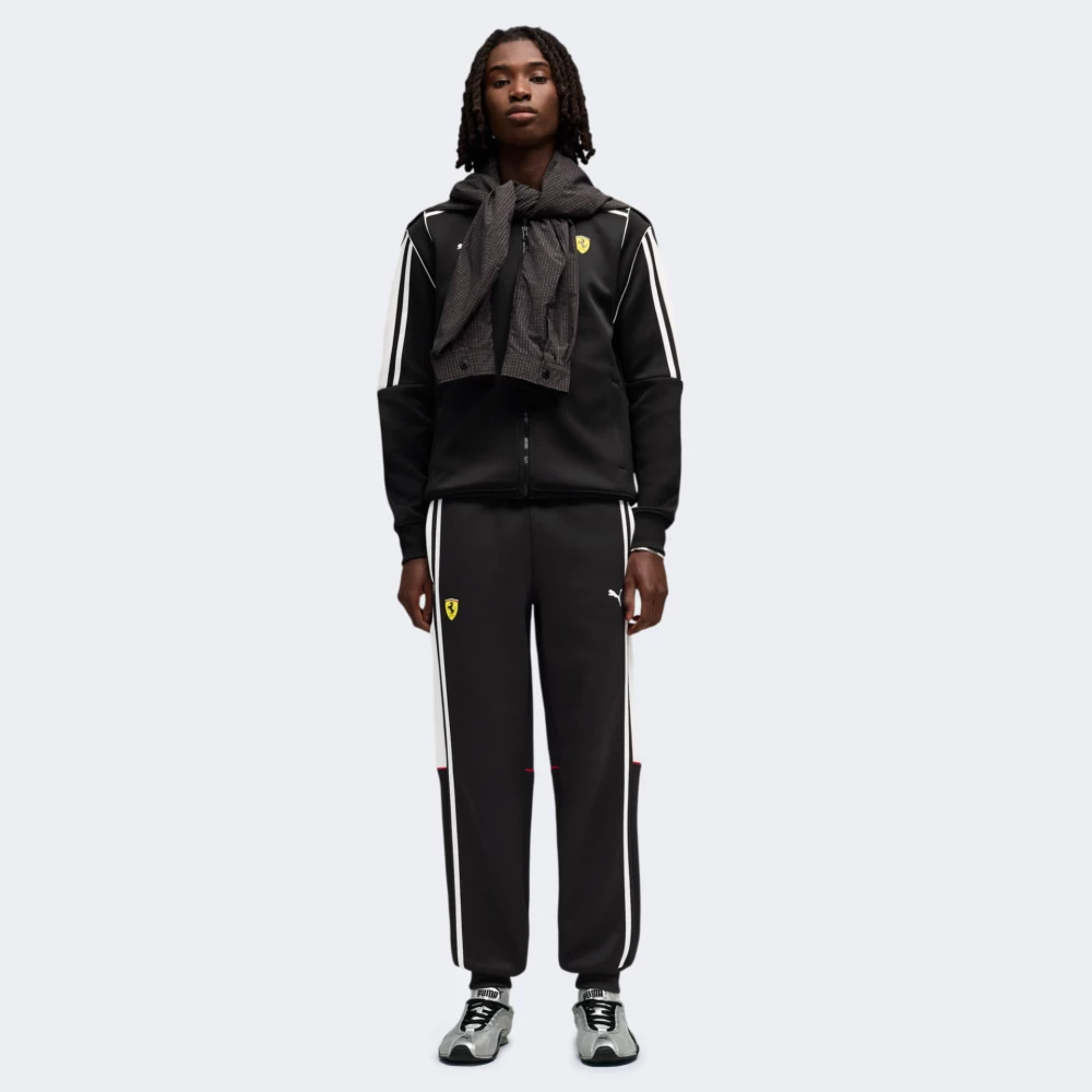 Колекція Puma Ferrari поєднує в собі елегантність і швидкість, відображаючи дух легендарної марки. Її кожен елемент пропонує ідеальний баланс між комфортом і стилем, роблячи її ідеальним вибором для шанувальників автоспорту та активного способу життя. Спортивні штани Puma Ferrari MT7 Track Pants перенесуть дух перегонів і відчуття адреналіну у Ваше повсякденне життя, додаючи кожному образу динаміки та впевненості. Вони виготовлені з м’якої, приємної на дотик тканини, тому дарує комфорт протягом усього дня. Класичний крій із манжетами знизу штанин забезпечує ідеальну посадку та повну свободу рухів. Еластичний пояс надійно тримає штани на місці, тож Ви будете впевнені у кожному кроці. Практичні бічні кишені вміщують смартфон, ключі або інші дрібниці, що завжди мають бути під рукою. Контрастні деталі та логотипи Puma і Scuderia Ferrari створюють виразний спортивний образ, який підкреслює Вашу рішучість та любов до швидкості. Puma піклується про зниження впливу на довкілля, тому модель виготовлено з використанням перероблених матеріалів.