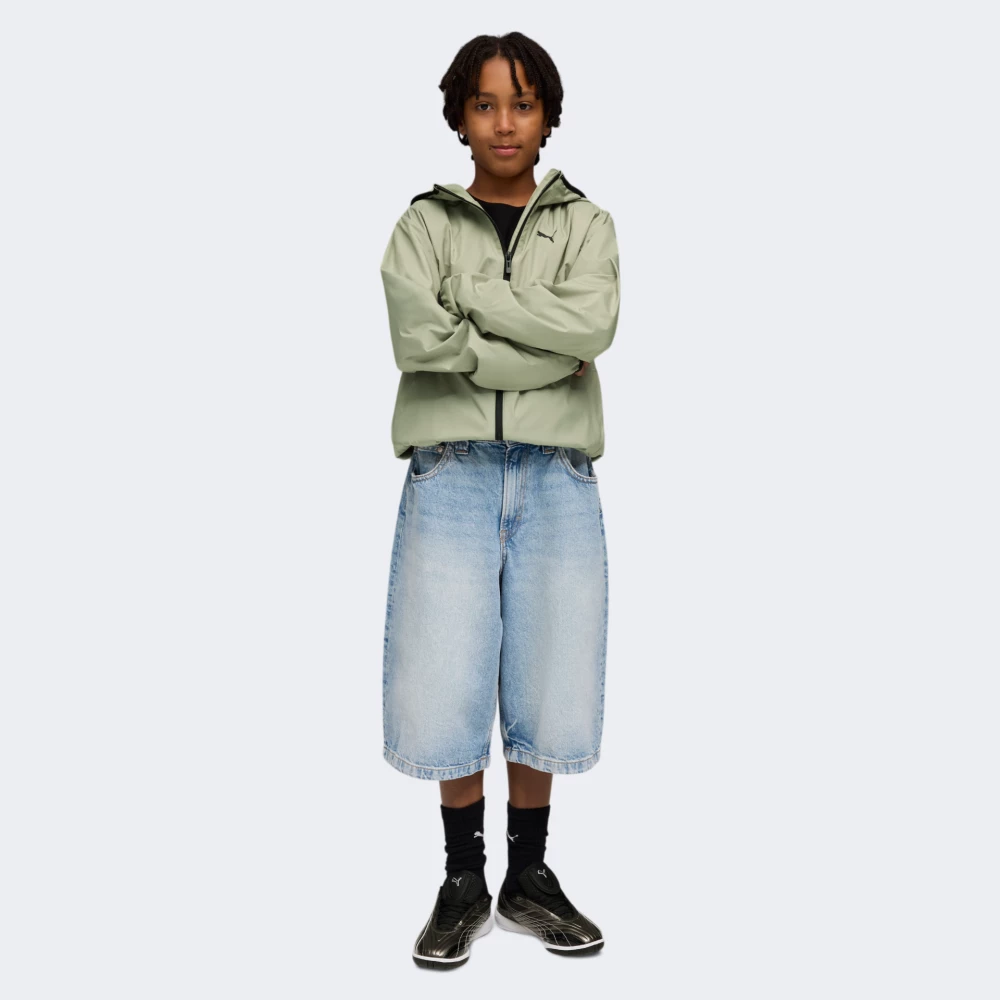 Вітрівка Puma Fleece Lined Windbreaker дозволить підліткам не змінювати планів, навіть коли за вікном раптово погіршилась погода. Міцний матеріал полотняного плетіння з технологією windCELL надійно захищає від вітру, а м’яка флісова підкладка зберігає приємне тепло, що дарує відчуття затишку. Класичний крій не сковує рухів, а тонкі манжети додають спортивної динаміки. Застібка-блискавка на всю довжину дозволяє легко регулювати тепло та створювати стильні багатошарові поєднання. Високий комір і капюшон захистять від несподіваних поривів вітру чи легкого дощу, а зручні бічні кишені збережуть смартфон, навушники чи інші важливі дрібниці. Завершує образ лаконічний логотип Puma, який підкреслює впевненість юного власника. Модель рекомендована для дітей віком від 8 до 16 років, які хочуть виглядати стильно та почуватися вільно у будь-яку погоду. Puma піклується про зниження впливу на довкілля, тому модель виготовлено з використанням перероблених матеріалів.