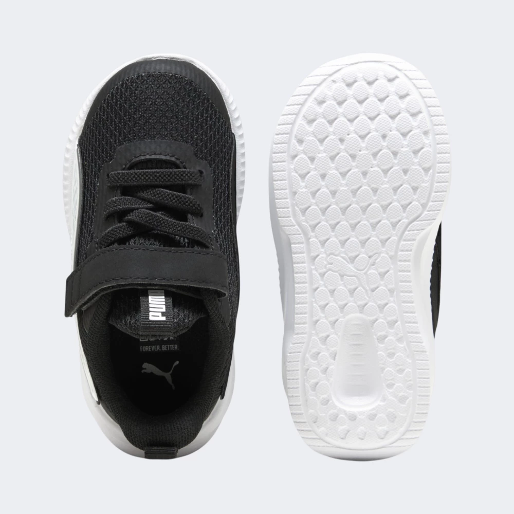 Кросівки Puma Flyer 3 Ac+ Inf допоможуть Вашому малюку впевнено робити свої перші кроки, бігати, гратися та радіти кожній новій пригоді. Текстильний верх дарує приємну легкість і підтримує комфортний мікроклімат протягом усього дня. Завдяки цьому дитина може безтурботно рухатися і насолоджуватися активними іграми. Поєднання еластичної шнурівки та практичної липучки робить взування швидким і простим. Знімна устілка SoftFoam із розміткою KinderFit® допомагає правильно підібрати розмір та забезпечує м’якість кожному кроку. Легка проміжна підошва додає амортизації та підтримки, щоб малюк почувався комфортно під час ходьби та активних ігор. А спеціальна підметка забезпечує стійкість і зчеплення з різними поверхнями — від домашньої підлоги до доріжок у парку. Фірмові смужки Formstrip та логотип Puma додають моделі стильного вигляду, дозволяючи навіть найменшим шанувальникам відчути дух легендарного спортивного бренду. Модель рекомендована для дітей до 4 років.