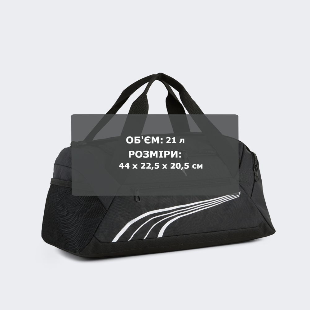 Сумка Puma Fundamental Extra Small Sports Bag зберігає баланс між стилем і функціональністю, щоб Ви завжди були готові до нових досягнень. Вона виготовлена з якісних матеріалів, які поєднують міцність і практичність, оскільки будь-яке забруднення легко видаляється вологою тканиною. Основне відділення забезпечує достатньо місця для спортивного одягу, кросівок чи інших необхідних речей, тоді як додаткові кишені допоможуть організувати дрібні предмети, щоб усе було на своєму місці. Бічна сітчаста кишеня для пляшки з водою надаватиме можливість швидко втамувати спрагу без потреби зупинятись, що додаватиме зручності на шляху до спортивної зали. Продуманий дизайн із подвійними ручками та регульованим плечовим ременем дозволятиме обрати найзручніший спосіб перенесення, забезпечуючи комфорт у кожній деталі. Сумка декорована логотипом, який демонструватиме Вашу відданість спортивному стилю та бренду Puma.