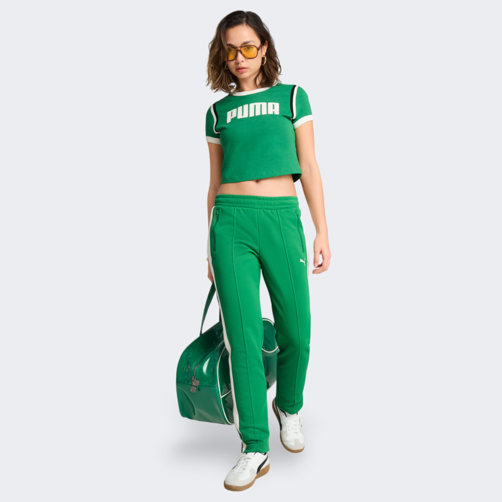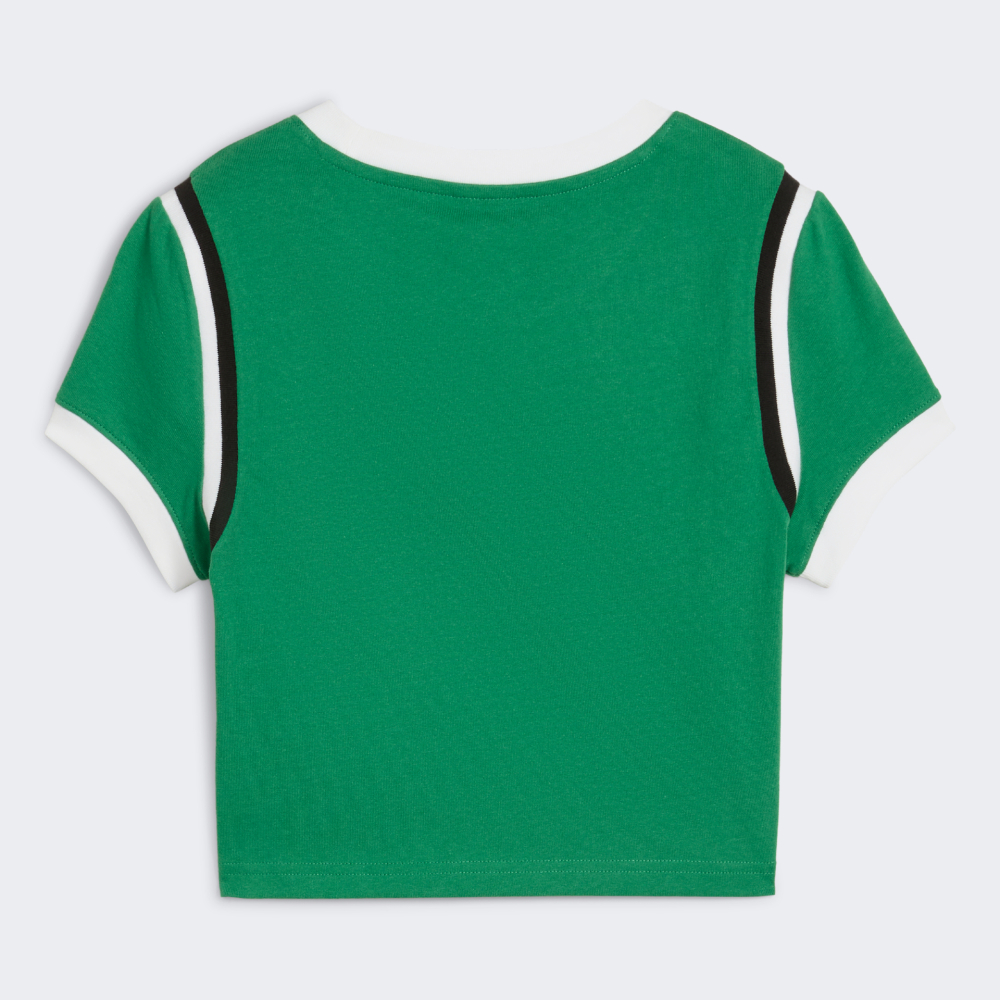 Футболка Puma Future.Puma.Archive Graphic Baby Tee перетворює архівну спадщину бренду на актуальний стиль сьогодення. Вона втілює дух ретро й додасть у Ваш гардероб вінтажну естетику з сучасним характером — ідеально для тих, хто цінує моду з історією. Футболка виготовлена з м’якої бавовняної тканини, тому дарує приємні тактильні відчуття та комфорт протягом усього дня. Приталений, злегка укорочений крій вигідно підкреслює фігуру, не обмежуючи рухів, — саме те, що потрібно для активних і впевнених у собі. Класична кругла горловина з м’якою стрічкою на внутрішній стороні зменшує ризик натирання, додаючи комфорту навіть при тривалому носінні. Насичений зелений колір моделі миттєво привертає увагу, а контрастні смужки й виразний напис Puma створюють яскравий візуальний акцент. Футболка стане ідеальним варіантом, щоб освіжити повсякденний образ і заявити про свою пристрасть до стилю з характером. Puma піклується про зниження впливу на довкілля, тому модель виготовлено щонайменше на 20% з перероблених волокон бавовни.