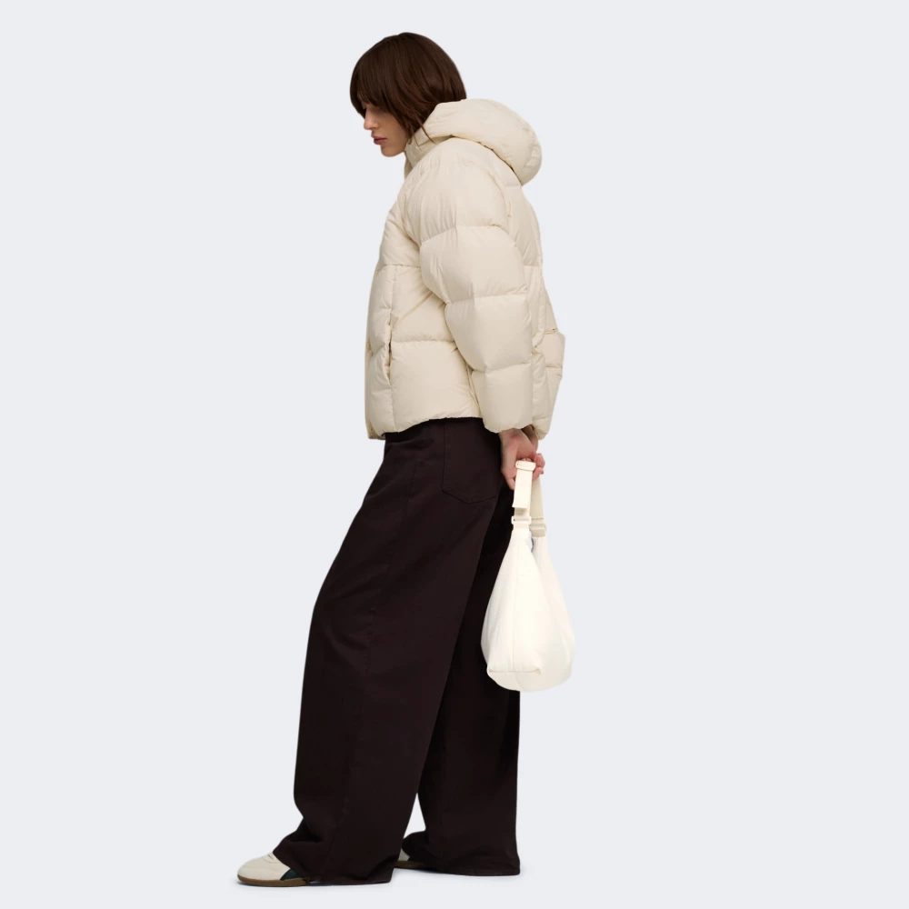 Пуховик Puma Hooded Down Puffer Jacket — це ідеальне поєднання функціональності, тепла та міського стилю, яке зробить Вас готовою до пригод у будь-яку погоду. Зовнішній шар виконаний із міцної тканини з водовідштовхувальним покриттям та технологією windCELL, тому захищає від вітру й легкого дощу, зберігаючи відчуття сухості та комфорту. Натуральний пуховий наповнювач у поєднанні з технологією warmCELL ефективно утримує тепло, створюючи приємний мікроклімат протягом усієї прогулянки. Вільний крій гарантує повну свободу рухів, тому дозволить Вам залишатися активною незалежно від погоди. Високий комір, утеплений капюшон і штормовий клапан поверх блискавки забезпечують додатковий захист від холоду та вітру, створюючи відчуття затишку. Бічні кишені з флісовою підкладкою додають практичності — у них приємно зігріти руки або сховати необхідні дрібниці. Мінімалістичний дизайн із впізнаваним логотипом Puma надає образу спортивної елегантності. Puma піклується про зниження впливу на довкілля, тому пух сертифіковано відповідно до стандарту Responsible Down Standard.