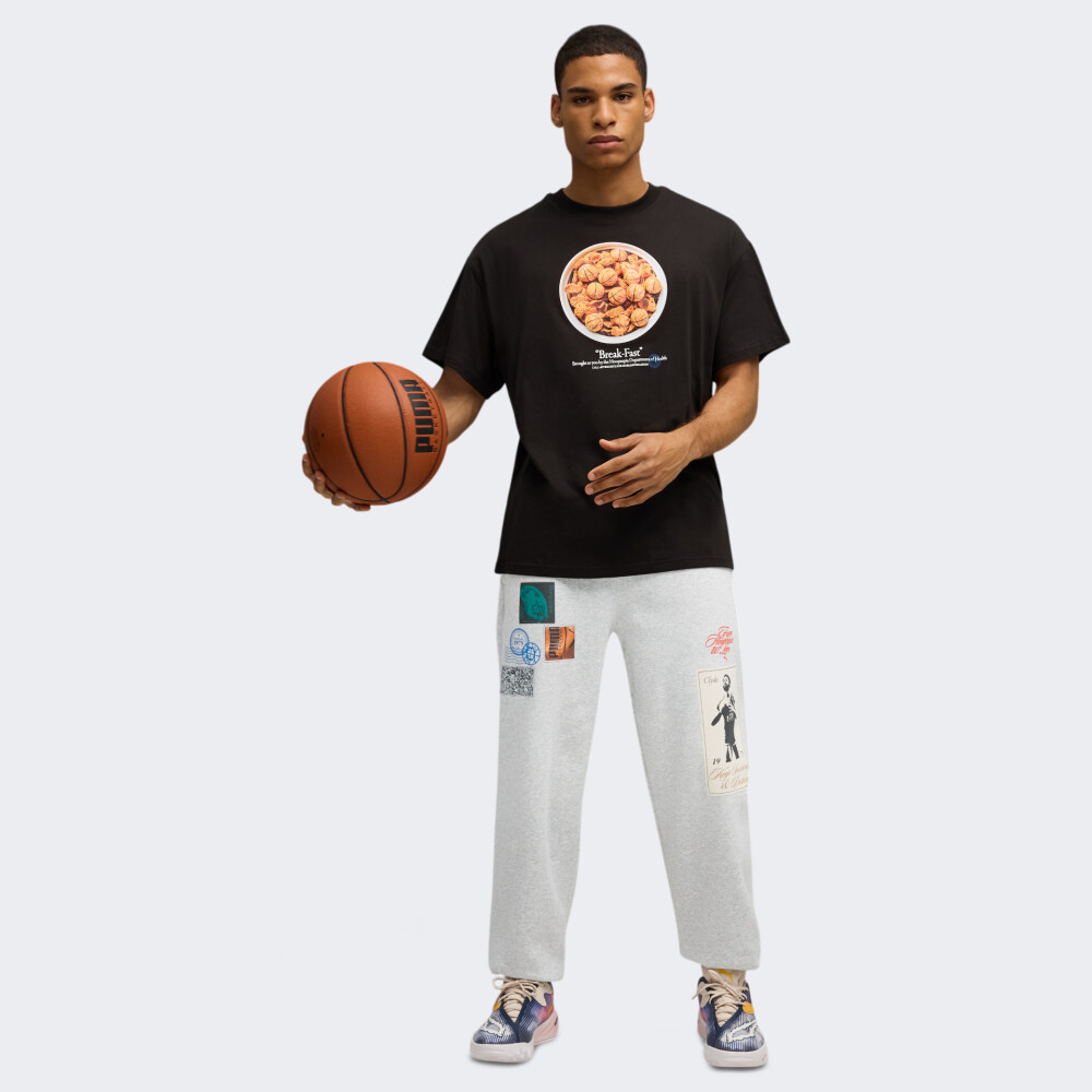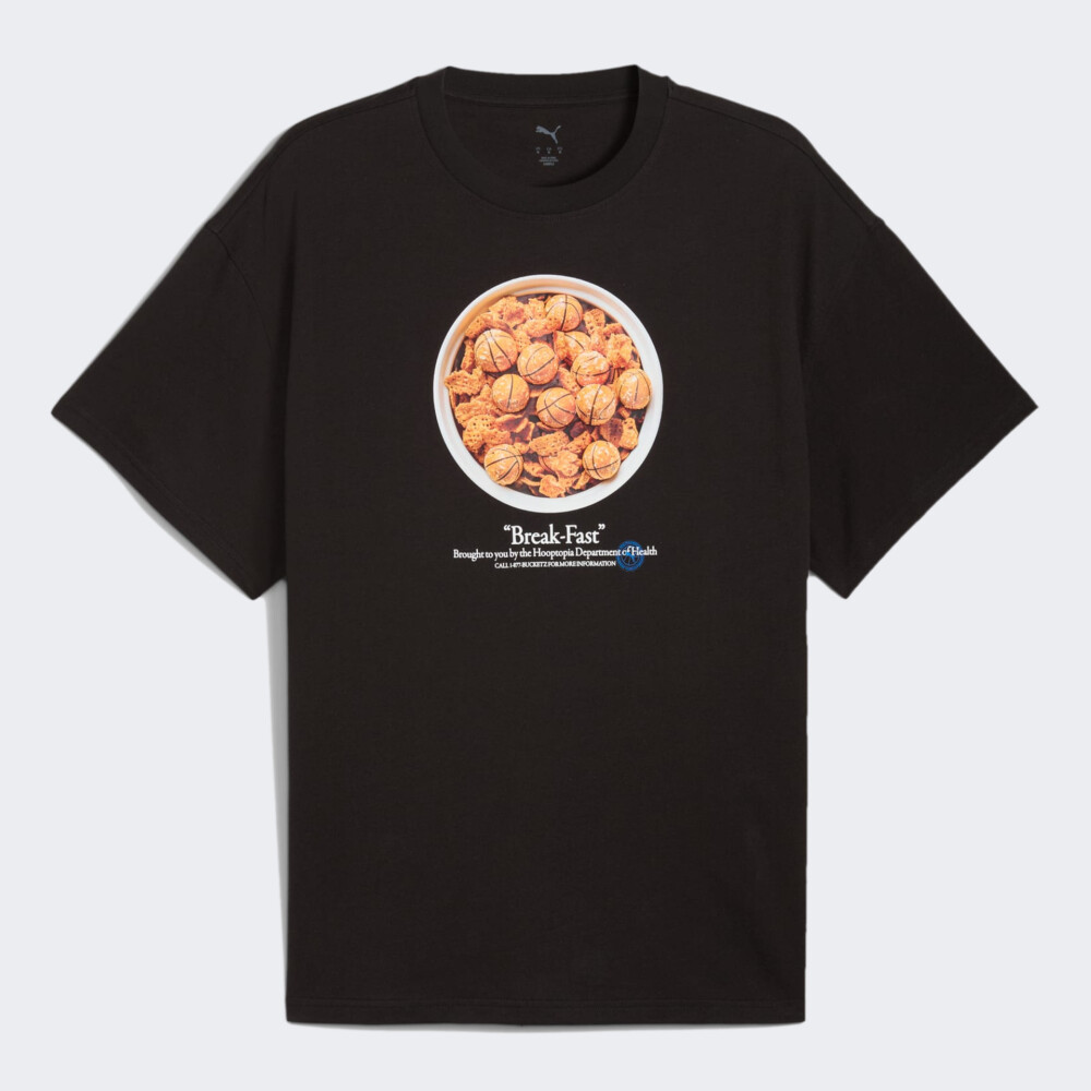 Футболка Puma Hooptopia Break Fast Tee створена для тих, хто живе баскетболом — на майданчику, на вулиці й у серці. Вона дозволяє не лише виглядати стильно, а й транслювати свою пристрасть до гри в кожному русі, у кожному образі. Модель виготовлена з м’якої бавовняної тканини, яка приємно відчувається на тілі та забезпечує максимальний комфорт у будь-якому ритмі дня. Вільний крій зі злегка спущеними плечовими швами дарує свободу рухів і невимушений силует. Кругла горловина з м’якою внутрішньою стрічкою запобігає натиранню, тому навіть під час тривалого носіння футболка дарує відчуття повного комфорту. Яскравий і креативний принт, натхненний баскетбольною культурою, зображає апетитну миску з пластівцями, серед яких ховаються мініатюрні баскетбольні м’ячі. Це більше, ніж просто зображення — це грайливе нагадування, що Ваше паливо зранку — це драйв, змагання й любов до гри. Напис "Break-Fast" додає гумору й шарму, перетворюючи футболку на справжню історію зі стилем.