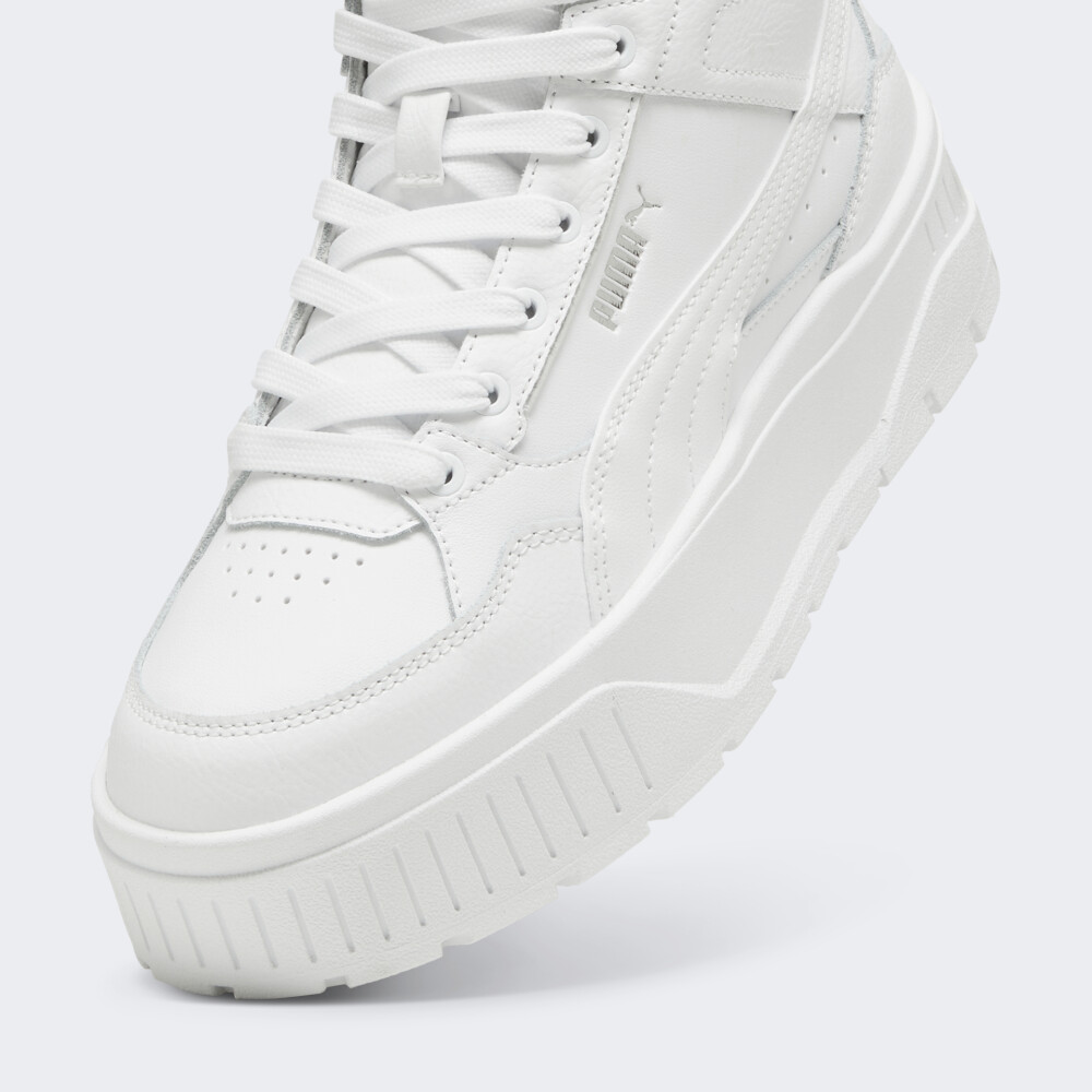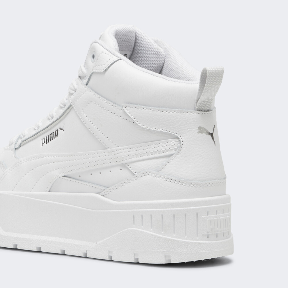 Кеди Puma Karmen II Idol Mid додадуть у Ваші повсякденні образи атмосферу ретро стилю, тому Ви впевнено та стильно зможете вирушати на зустріч новим пригодам дня. Їх верх виготовлено з поєднання натуральної та синтетичної шкіри, що гарантуватиме комфорт протягом усього дня. Злегка завищений силует надаватиме необхідної підтримки для Вашої стопи, а м'яка устілка сприятиме легкій амортизації. Висока підошва з гуми має протектор з різним малюнком, що забезпечуватиме стійкість та необхідне зчеплення з поверхнями. Стильний дизайн кедів із фірмовими смужками Formstrip та логотипом підкреслюватимуть Вашу прихильність до сміливого спортивного стилю Puma, який ніколи не залишатиметься непоміченим. Puma піклується про зниження впливу на довкілля, тому матеріал верху містить щонайменше 20% перероблених волокон, а шкіра вироблена екологічно відповідальним шляхом, пройшла аудит та сертифікацію відповідно до протоколу організації Leather Working Group.