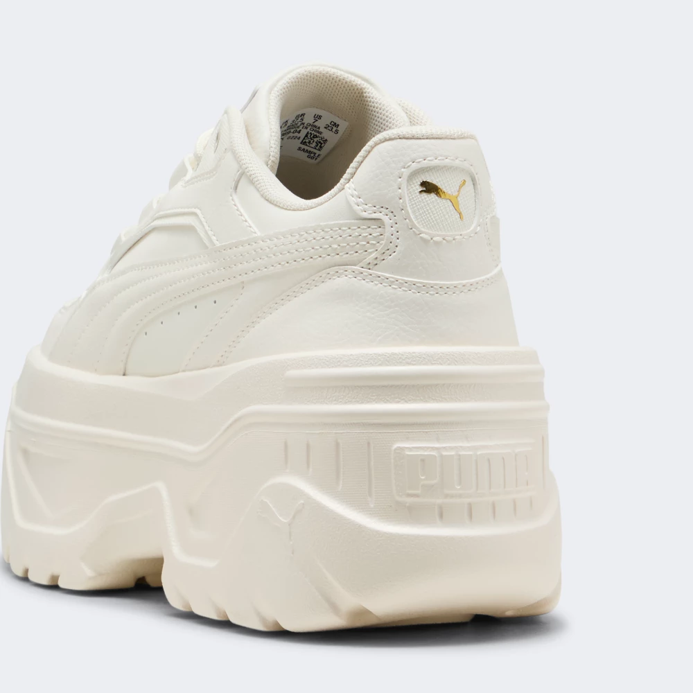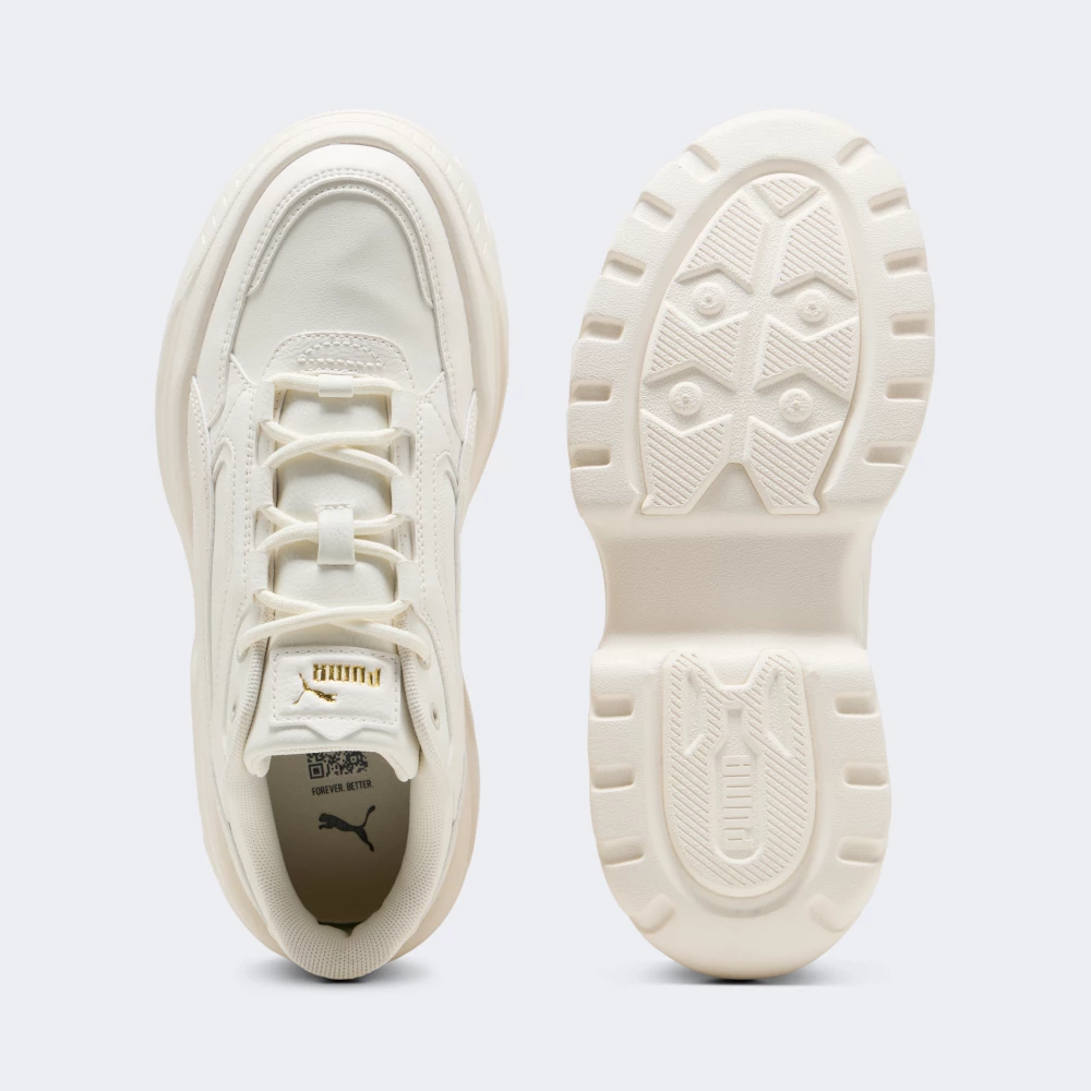 Кеди Puma Karmen X-TRA поєднують сучасний chunky‑силует з практичними характеристиками для щоденного носіння. Модель має низький кедовий профіль і масивну платформену підошву з вираженим рельєфним протектором, що надає стійкість і впевнене зчеплення з поверхнею, а також формує помітний модний образ. Дизайн виконаний у мінімалістичній монохромній гамі: основний тон дуже світлий кремово‑білий, акценти в кремовому молочному відтінку на швах і підошві додають теплоти образу. Комфорт у моделі забезпечується м’якою устілкою з матеріалу SoftFoam, яка приймає форму стопи і створює ефект пам’яті, знижуючи навантаження при тривалій ходьбі; язичок оптимально лягає на підйом, рівномірно розподіляючи тиск шнурівки. Верх виготовлений із гладкого синтетичного матеріалу з перфорацією в бічній частині, що підвищує вентиляцію; підкладка з дихаючого текстилю підтримує комфортний мікроклімат для стопи. Конструкція передбачає класичну шнурівку, підсилену п’яткову частину і рельєфні декоративні накладки, що одночасно виконують захисну функцію. Логотипи Puma зроблені тон‑в‑тон тисненням і рельєфом, підкреслюючи приналежність моделі без контрастних елементів. Підошва складається з щільного полімерного матеріалу з зовнішнім зносостійким шаром і виступами, які подовжують термін експлуатації; її об’ємна форма забезпечує природну амортизацію. Модель ідеально підходить для демісезонного носіння у весняно‑осінній період, для ходьби, урбаністичного відпочинку та повсякденного використання; не призначена для спеціалізованих видів спорту. Завдяки зносостійкому синтетичному верху догляд за кедами простий, а продумана ергономіка устілки і платформи гарантують комфорт протягом дня.