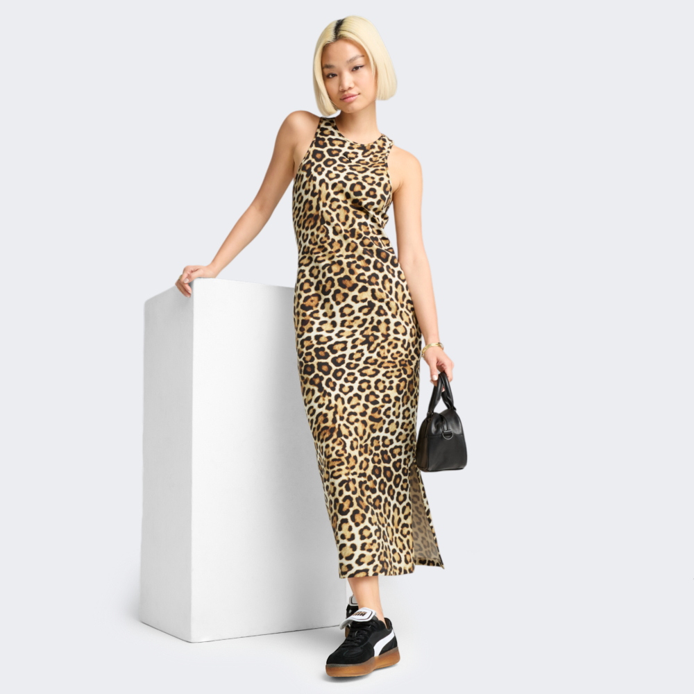 Плаття Puma Leo Luxe Slim Aop Dress — це яскрава модна заява для тих, хто не боїться привертати увагу та обожнює самовираження через стиль. Його сміливий леопардовий принт підкреслює Вашу впевненість, харизму та любов до життя у кожному кроці, хай то променад у місті, зустріч із подругами чи вечірній вихід. Еластична бавовняна тканина ніжно огортає тіло, даруючи комфорт на цілий день. Плаття без рукавів створене для вільного руху та відкритості, а довжина нижче колін додає силуету витонченості та сучасного шарму. Стильний бічний розріз розкриває грайливість і дозволяє не обмежувати себе у динаміці — Ви вільно рухаєтесь, куди б не привів день. Невеликий логотип Puma делікатно доповнює образ, втілюючи баланс між вуличною модою та спортивним корінням бренду. Це плаття стане ідеальним вибором для сміливих образів, які транслюють Вашу індивідуальність, силу та впевненість у собі. Puma піклується про зниження впливу на довкілля, тому модель виготовлено щонайменше на 20% з переробленої бавовни.