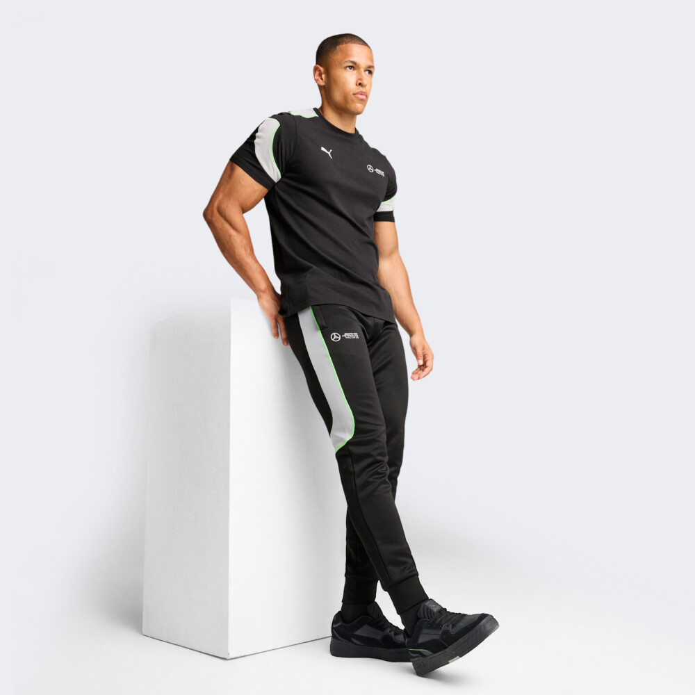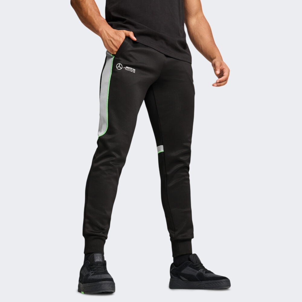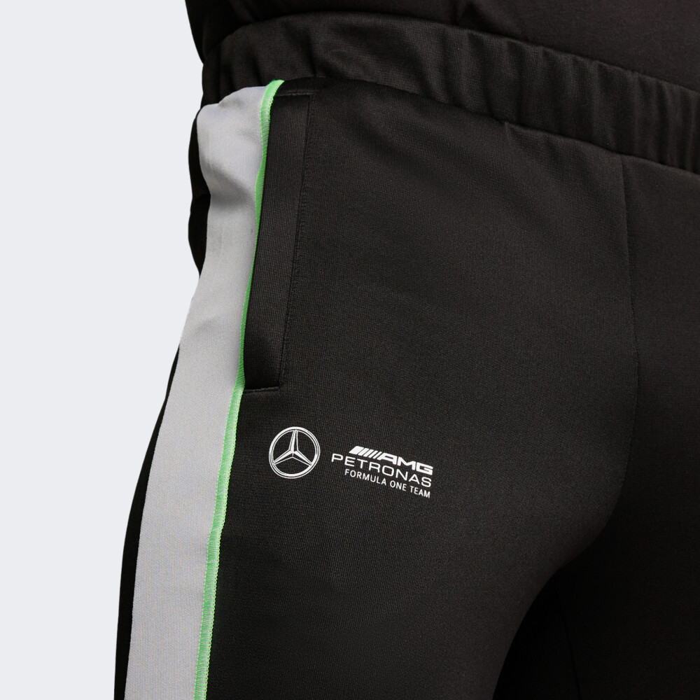 У 2012 році Puma підписала довгостроковий контракт з Mercedes-AMG Petronas Team Formula One. В результаті чого, було створено ліцензовану преміумколекцію Puma Mercedes для автолюбителів та шанувальників команди, яка відтворює lifestyle-естетику. Спортивні штани Puma MAPF1 MT7+ Track Pants подарують Вам впевненість у кожному русі. Вони виготовлені з якісної тканини, яка відводить зайву вологу від тіла для швидкого випаровування. Класичний крій не сковуватиме Ваших рухів, а у поєднанні з манжетами та еластичним поясом гарантуватиме комфортну посадку. Бічні кишені на блискавці дозволять мати при собі цінні дрібнички. Штани декоровані у стилі лінійки T7 та логотипом Mercedes-AMG. Puma піклується про зниження впливу на довкілля, тому матеріал містить щонайменше 30% перероблених волокон.