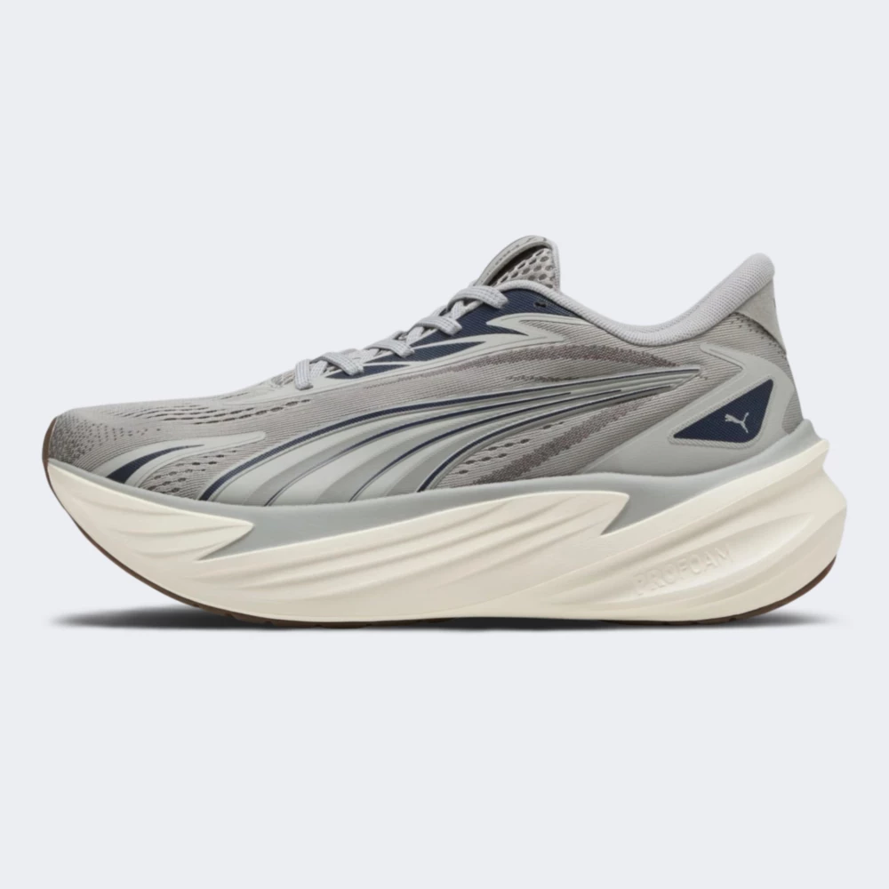 Кросівки Puma Maxima Pro створені для тих, хто сприймає біг як можливість перевершувати себе та відчувати справжню силу руху. Функціональна сітка верху забезпечує відмінну вентиляцію, дозволяючи повітрю вільно циркулювати навіть під час інтенсивних тренувань. Класична система шнурівки надійно фіксує стопу, щоб Ви могли зосередитися на ритмі бігу. Проміжна підошва ProFoam дарує м’яку, але водночас пружну амортизацію з приємним відскоком. Вона ефективно поглинає ударні навантаження, зменшує втому та допомагає підтримувати швидкість. Надійна гумова підметка ProTread гарантує зчеплення з різними поверхнями — від бігових доріжок стадіону до міських тротуарів, тому Ви можете тренуватися впевнено за будь-яких умов. Сучасний динамічний дизайн із фірмовими смужками Formstrip та знаковим логотипом Puma підкреслює спортивний характер моделі та додає образу енергії. Puma піклується про зниження впливу на довкілля, тому модель виготовлено з використанням перероблених матеріалів.