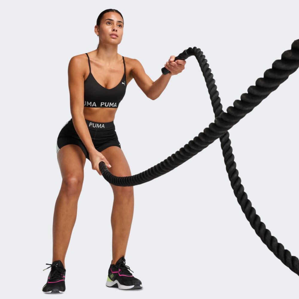 Топ Puma Move Strong Bra стане стильним союзником на шляху до нових спортивних звершень — від першого кроку на килимок до останнього повтору на тренуванні. Він виготовлений з інноваційної технологічної тканини, яка активно відводить вологу та піт, забезпечуючи відчуття свіжості й сухості навіть у найінтенсивніші моменти. Еластична тасьма на нижньому краю гарантує надійну підтримку без відчуття тиску, а регульовані бретелі дозволяють легко адаптувати посадку під власні потреби. Знімні подушечки дають можливість формувати силует саме так, як Вам подобається. Стриманий, але стильний дизайн з легендарними логотипами Puma підкреслює Вашу внутрішню силу та любов до спорту. Puma піклується про зниження впливу на довкілля, тому модель виготовлено з використанням перероблених матеріалів.