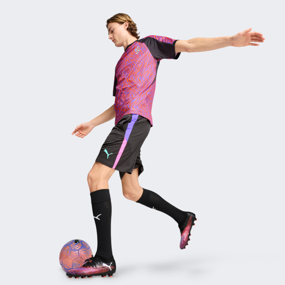Футболка Puma Neymar Jr Creativity Jersey — це вибух енергії, стилю та натхнення, створений у тандемі з одним із найяскравіших футболістів сучасності — Неймаром-молодшим. У кожній лінії дизайну — заклик грати сміливо, нестандартно й з пристрастю. Модель виготовлена з легкої технологічної тканини та сітчастих вставок, що забезпечує високу повітропроникність і швидке відведення вологи, аби Ви залишались сухими та зосередженими навіть у найнапруженіші миті матчу. Класичний крій із рукавами реглан забезпечує максимальну свободу рухів, що особливо важливо під час різких ривків, фінтів або боротьби за м’яч. Кругла горловина з м’якою стрічкою на внутрішній стороні дбайливо захищає шкіру від натирання, гарантуючи комфорт навіть після тривалих тренувань чи матчів. Яскрава графіка NJR та фірмовий логотип Puma підкреслять Вашу готовність грати з уявою, граційністю та вогнем у серці, як це робить сам Неймар. Puma піклується про зниження впливу на довкілля, тому модель виготовлено з використанням перероблених матеріалів.
