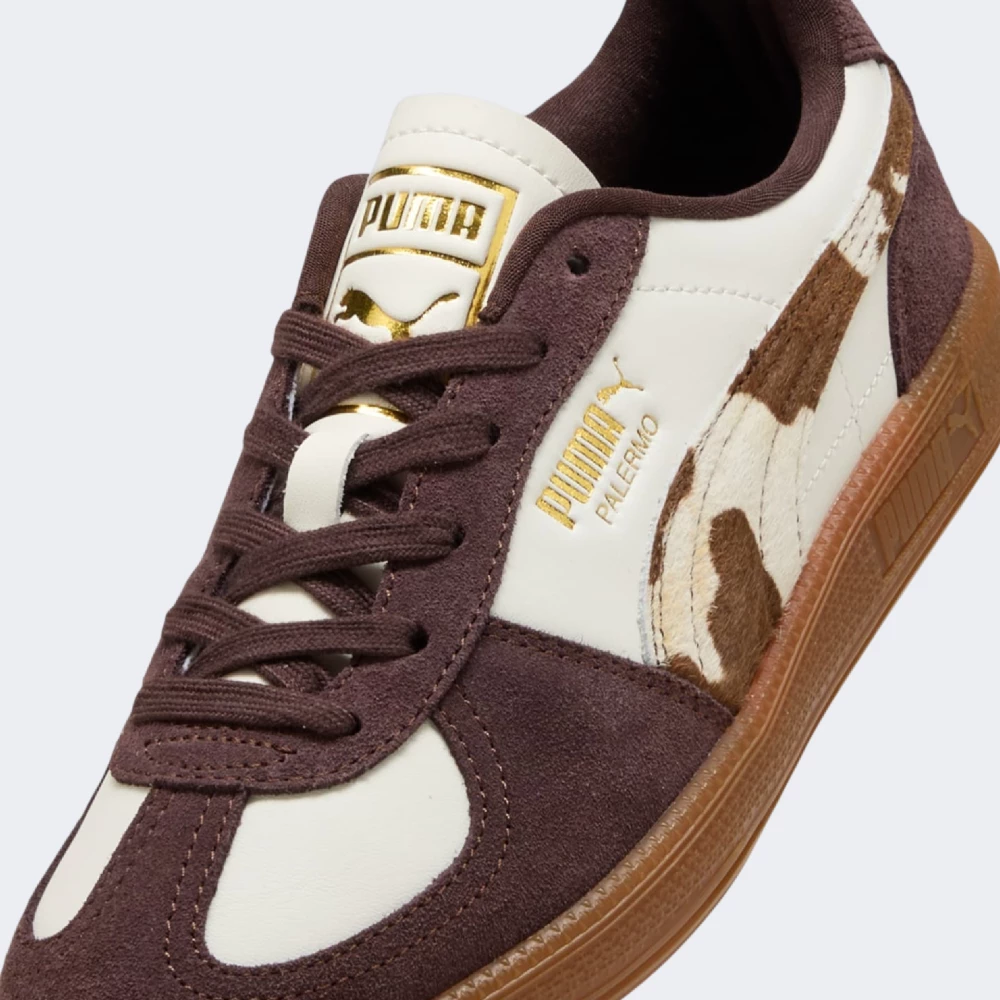 Кеди Puma Palermo Cow Wns (Mu) — це стильна класика з характером, яка повертає дух 80-х у сучасний гардероб. Натхненні легендарною моделлю, улюбленою британськими футбольними фанатами, вони поєднують ретро-естетику з сучасним комфортом, додаючи шарму і впевненості кожному Вашому образу. Верх із м’якої шкіри з накладками поєднує міцність і стиль, даруючи елегантність та відчуття комфорту одночасно. Класична шнурівка надійно фіксує стопу, тож Ви завжди відчуватимете впевненість у кожному кроці. М’який комір та сітчаста устілка Ortholite забезпечують комфорт навіть під час довгих прогулянок містом. Міцна гумова підошва гарантує відмінне зчеплення з різними поверхнями та стабільність під час активного дня. Стильні фірмові смужки Formstrip із тваринним принтом та деталі бренду Puma надають кедам сучасного характеру й роблять їх яскравим акцентом будь-якого образу.
