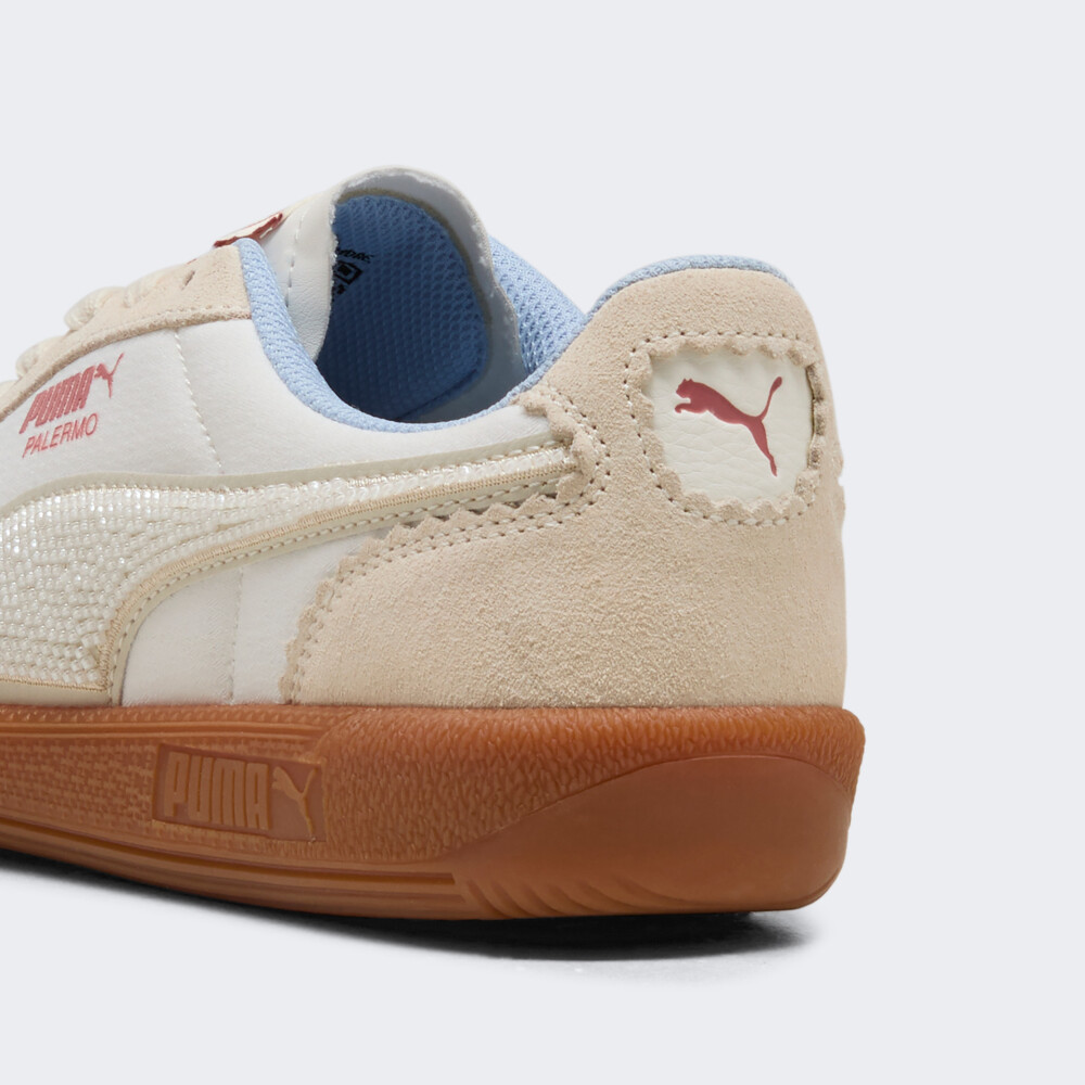 Кеди Puma Palermo Gentle Meld Wns — це легенда, що повернулася у сучасність, щоб додати Вашим образам неповторного шарму ретро. Вони натхненні моделлю з початку 80-х років, яка стала символом британської футбольної культури. Текстильний верх із м’якими накладками дарує приємне відчуття на нозі та чудову вентиляцію, забезпечуючи комфорт навіть під час тривалого носіння. Класична шнурівка надійно фіксує стопу, а сітчаста устілка Ortholite створює додаткову амортизацію та легкість кожного кроку. Міцна гумова підошва гарантує надійне зчеплення з будь-якою поверхнею, дозволяючи впевнено рухатися в ритмі міста — від прогулянок парком до динамічного дня у великому місті. Фірмові смужки Formstrip і впізнавані деталі Puma підкреслюють Вашу любов до класики, додаючи сучасного звучання в кожен рух.