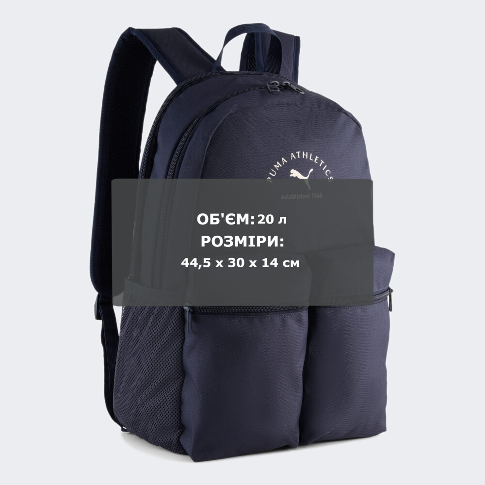 Рюкзак Puma Phase Class Backpack створений для тих, хто не уявляє свого життя без руху, мрій і постійних відкриттів. Він стане надійним супутником у будь-якій ситуації — від навчання та прогулянок із друзями до несподіваних пригод, які починаються з першого кроку за двері. Модель виготовлена з міцного матеріалу, тому витримує динаміку сучасного життя та зберігає свій естетичний вигляд навіть після частого використання. Завдяки продуманій конструкції, Ви зможете впорядкувати всі свої речі: два місткі основні відділення вмістять ноутбук, книги, зошити або інші необхідні речі. Передні кишені на блискавці стануть ідеальним місцем для дрібниць, які завжди мають бути під рукою — від ключів до навушників. А бічні сітчасті кишені забезпечать легкий доступ до пляшки з водою — для зручного втамування спраги у будь-який момент. Плечові ремені регулюються, тому Ви зможете підібрати необхідну довжину для комфортного носіння. Напис з логотипом Puma підкреслить Вашу любов до спортивної естетики бренду.