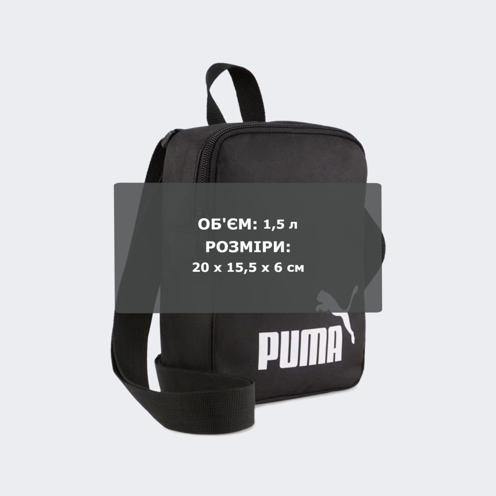 Сумка Puma Phase Portable – це стильний аксесуар, який стане Вашим незамінним супутником для активного ритму життя. Вона виготовлена з високоякісного синтетичного матеріалу, який вирізняється зносостійкістю та легкістю в догляді – просто протріть поверхню вологою тканиною, і сумка виглядатиме як нова. Просторе основне відділення зручно організовуватиме всі необхідні речі, звільнивши Ваші кишені та забезпечивши швидкий доступ до важливих дрібничок. Регульований плечовий ремінь створюватиме максимальний комфорт навіть під час тривалого носіння, а зручна петля пропонуватиме альтернативний спосіб перенесення. Завдяки універсальному дизайну сумка підходить для прогулянок, походів у справах або активного дозвілля. Контрастний логотип Puma підкреслюватиме Вашу прихильність до спортивного стилю та легендарного бренду. Puma піклується про зниження впливу на довкілля, тому модель виготовлено щонайменше на 90% з перероблених матеріалів.