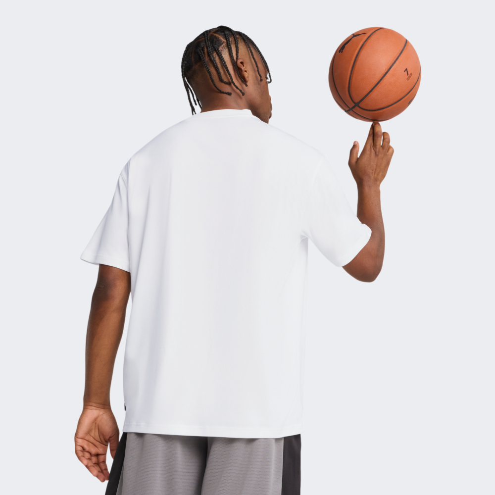 Футболка Puma Posterize Tee I зробить Ваші тренування та ігри в баскетбол не лише комфортними, а й максимально виразними. Вона виготовлена з легкої тканини, яка приємно охолоджує тіло навіть у розпалі найнапруженіших моментів, забезпечуючи максимальний комфорт для концентрації на перемозі. Вільний крій зі злегка спущеними плечовими швами не сковує рухів, дозволяючи діяти швидко, різко, впевнено. Класична кругла горловина зі спеціальною м’якою стрічкою зсередини захищає шкіру від натирань навіть під час найінтенсивнішого тренування. Графічний принт з м’ячем та логотипом Puma — це не просто прикраса, а справжнє визнання Вашої пристрасті до баскетболу, швидкості, стилю та гри з характером. Puma піклується про зниження впливу на довкілля, тому модель виготовлено з використанням перероблених матеріалів.