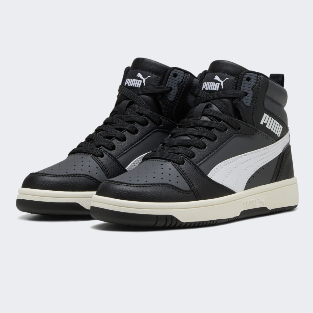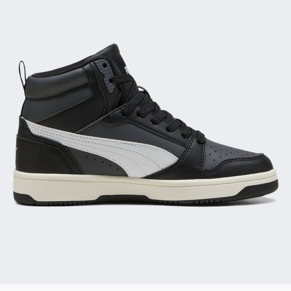 Кеди Puma Rebound V6 Mid Jr відтворюють ретро дизайн золотого віку баскетболу та поєднують вінтажний стиль зі зручною підтримкою. Їх синтетичний верх доповнено перфорацією, що гарантуватиме юним ногам комфортні відчуття протягом усього дня. Щільна шнурівка та завищений силует покращуватимуть фіксацію стопи, щоб дитина могла впевнено крокувати протягом дня. Міцна гумова підошва відповідатиме за зчеплення з поверхнями та зробить модель більш стійкою до швидких ознак зношування. Кеди декоровані логотипами та стильними смужками Formstrip, що підкреслить прихильність юного модника до вуличного стилю бренду. Модель рекомендована для дітей віком від 8 до 16 років. Puma піклується про зниження впливу на довкілля, тому модель виготовлено з використанням перероблених матеріалів.