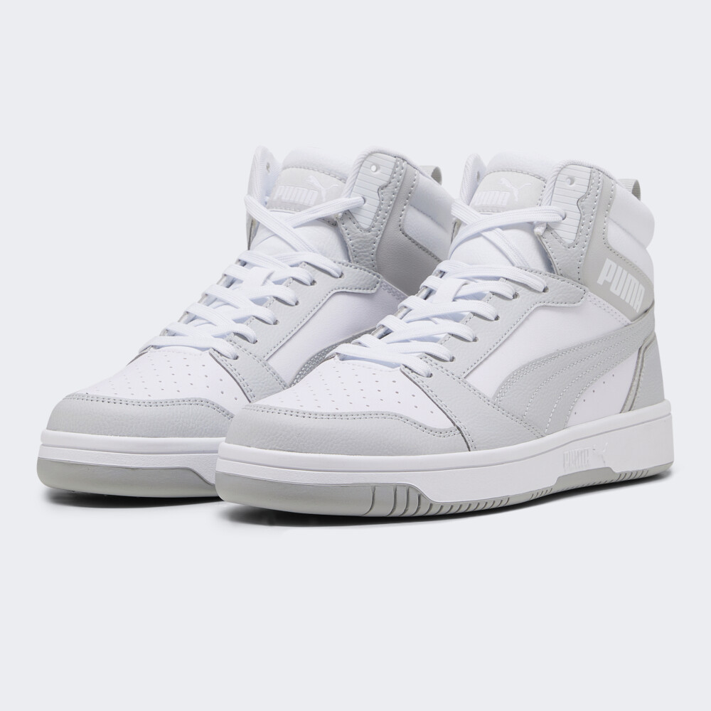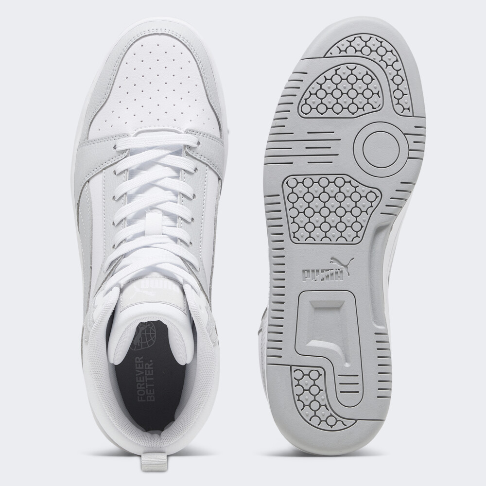 Кеди Puma Rebound V6 відтворюють ретро дизайн золотого віку баскетболу та поєднують вінтажний стиль зі зручною підтримкою. Їх синтетичний верх доповнено перфорацією, що гарантуватиме Вашим ногам комфортні відчуття протягом усього дня. Щільна шнурівка та завищений силует покращуватимуть фіксацію стопи. Міцна гумова підошва відповідатиме за зчеплення з поверхнями та зробить модель більш стійкою до швидких ознак зношування. Кеди декоровані логотипами та стильними смужками Formstrip, що підкреслить Вашу прихильність до вуличного стилю бренду. Puma піклується про зниження впливу на довкілля, тому матеріал верху містить щонайменше 30%, а підошва принаймні 10% перероблених волокон, що є одним з кроків до кращого майбутнього.